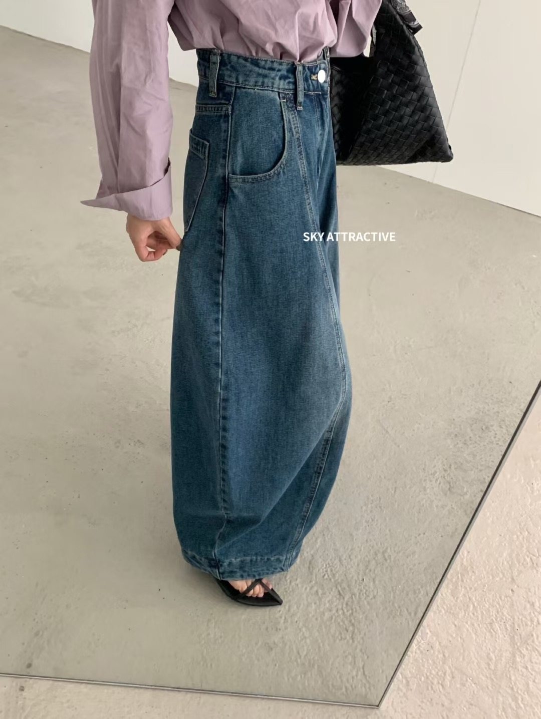 【牛仔系列】韩系时尚牛仔背小众显瘦半身裙高腰牛仔裤阔腿裤mh