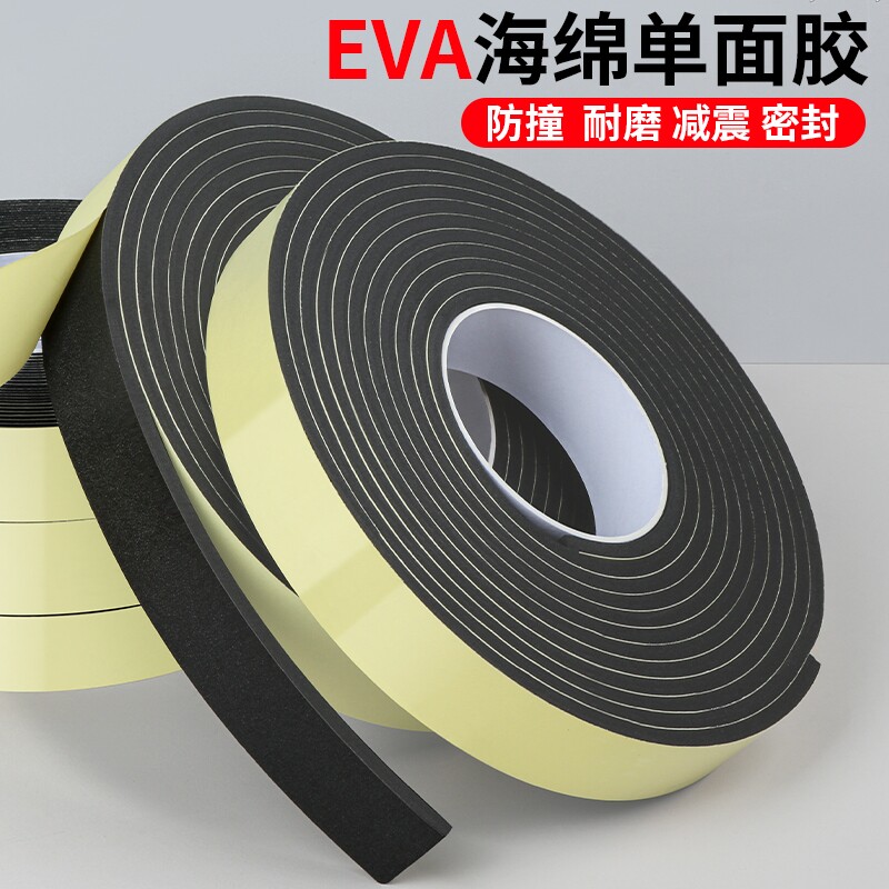 黑色单面海绵EVA胶带防撞密封条隔音减震缓冲挡水止浆填缝泡沫橡胶泡棉胶条加厚防水自粘型缝隙填补隔音贴
