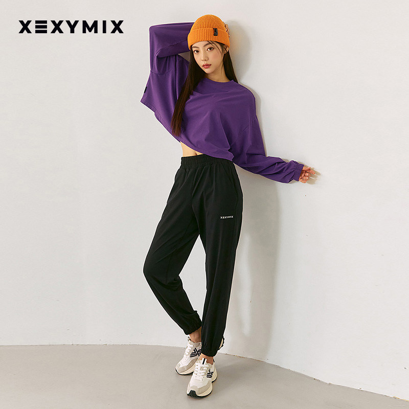 xexymix杰克茜女轻盈宽松休闲舒适口袋字母印花束脚裤FXAA5380G