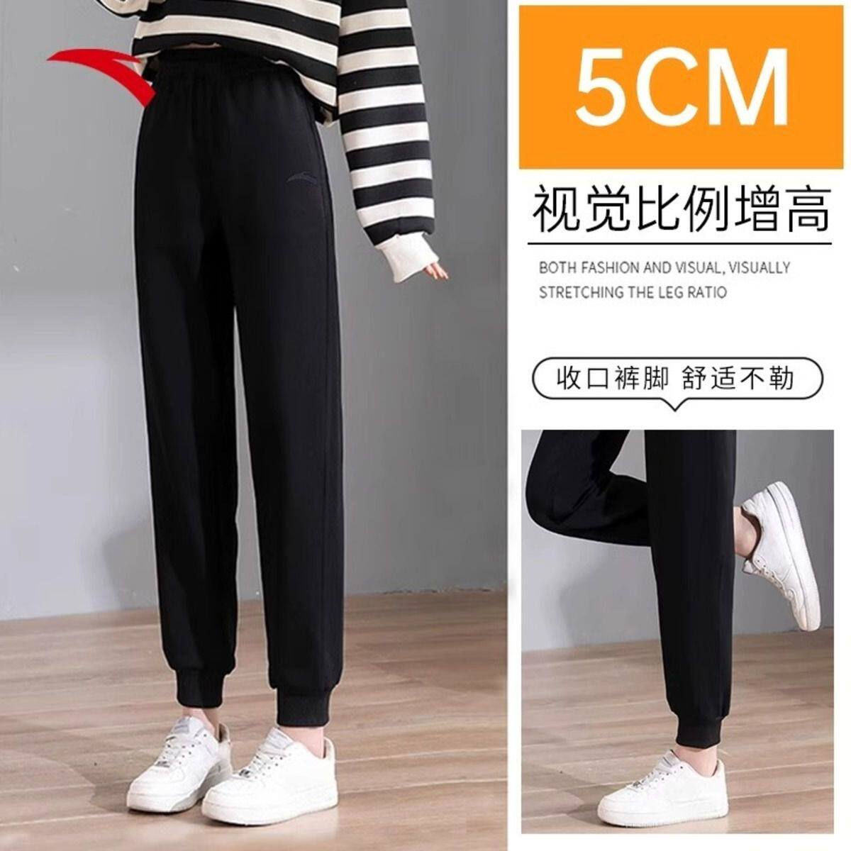 安踏运动长裤女士秋冬针织裤束脚裤黑色跑步健身百搭休闲裤子卫裤
