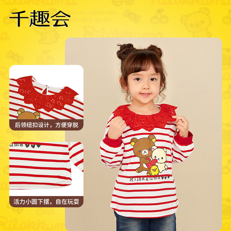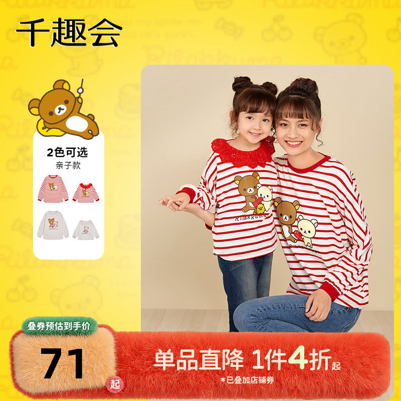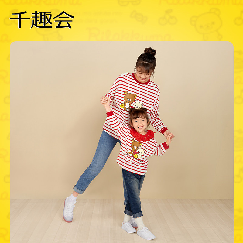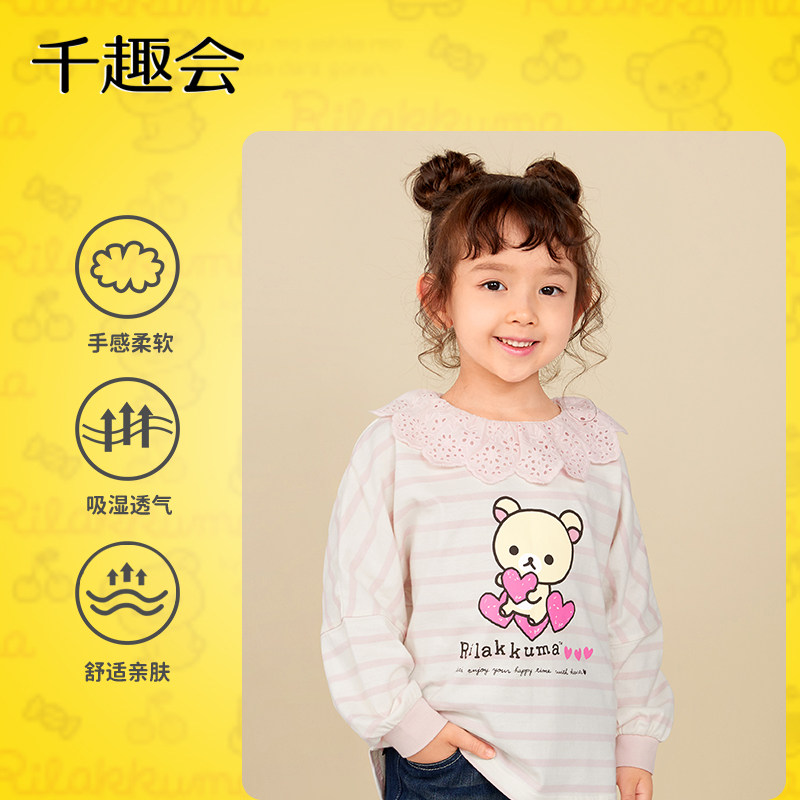 千趣会童装春秋款儿童长袖T恤甜美娃娃领长袖亲子装
