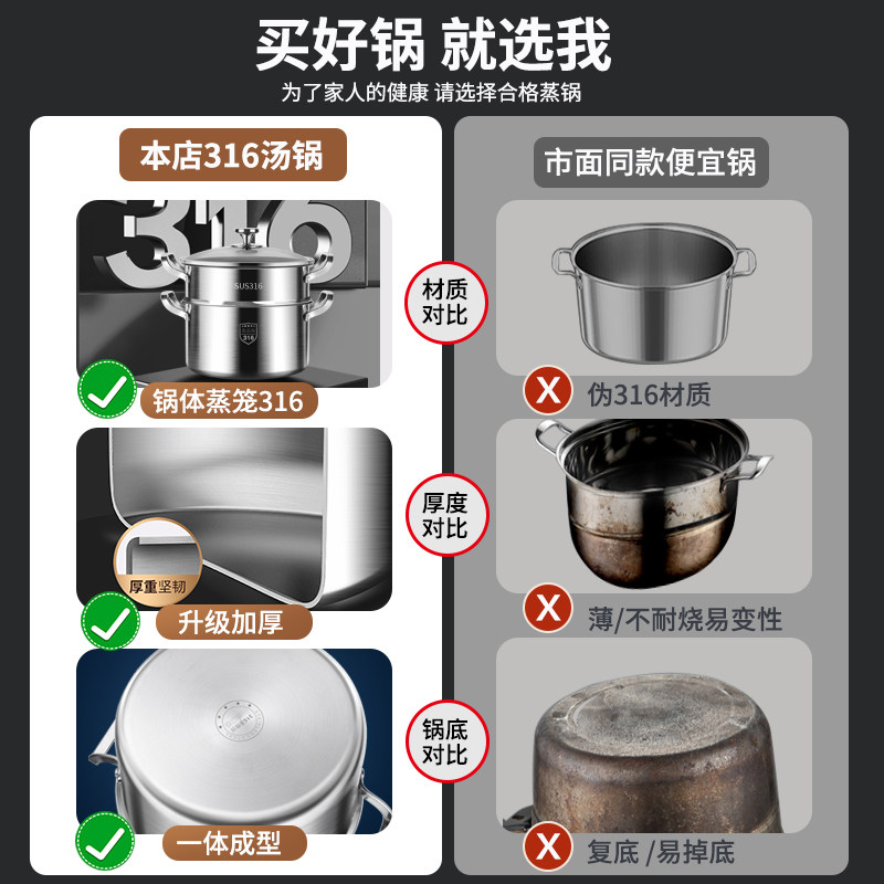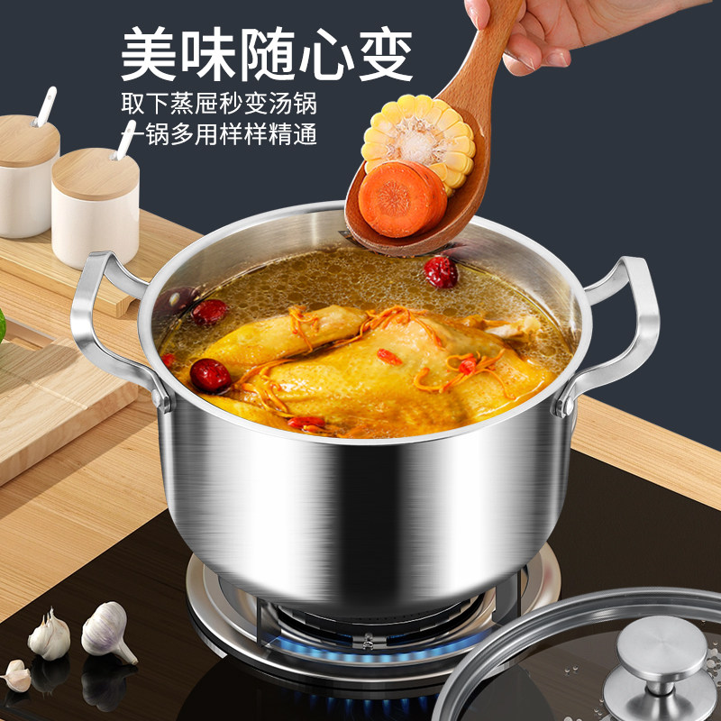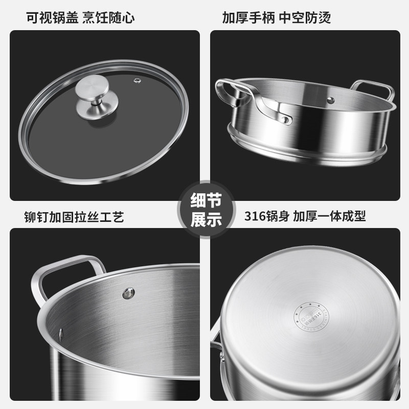 康巴赫款316不锈钢汤锅家用电磁炉煮粥锅蒸锅加厚双耳锅食品级