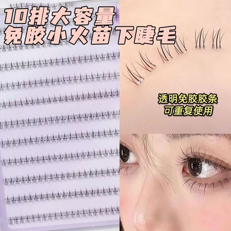 欧萸集免胶水自粘小火苗下睫毛单簇女自然款仿真假睫毛眼睫毛上眼