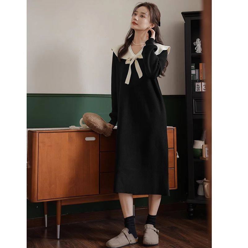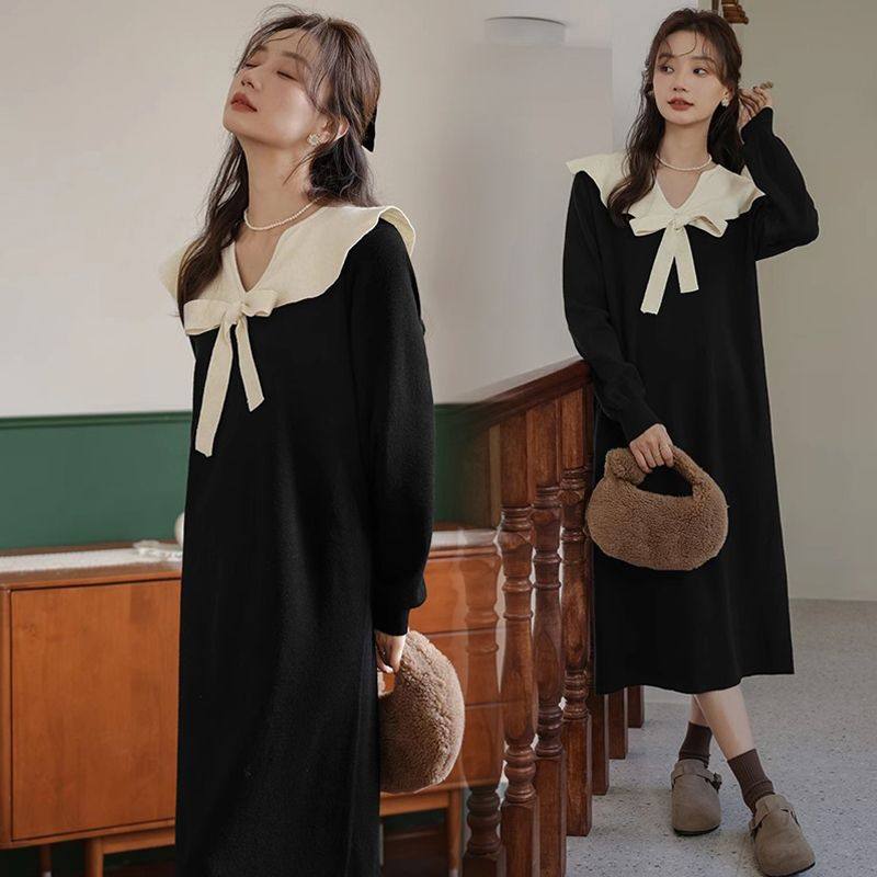 婧麒孕妇连衣裙秋冬季网红款娃娃领针织裙孕妈时尚穿搭衣服休闲装