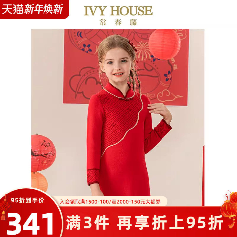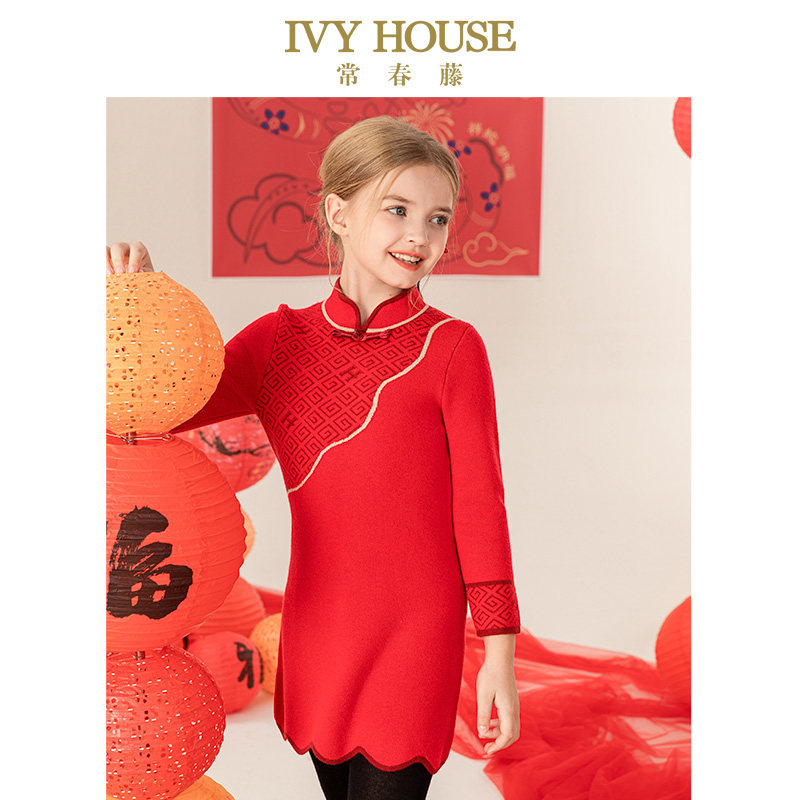 IVY HOUSE常春藤童装女童春季新款 新中式毛织旗袍国风连衣裙新年