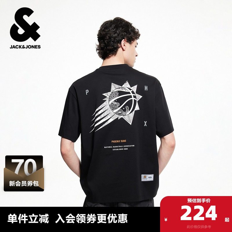 杰克琼斯男装夏季新款NBA联名T恤经典黑色百搭纯棉潮流短袖上衣