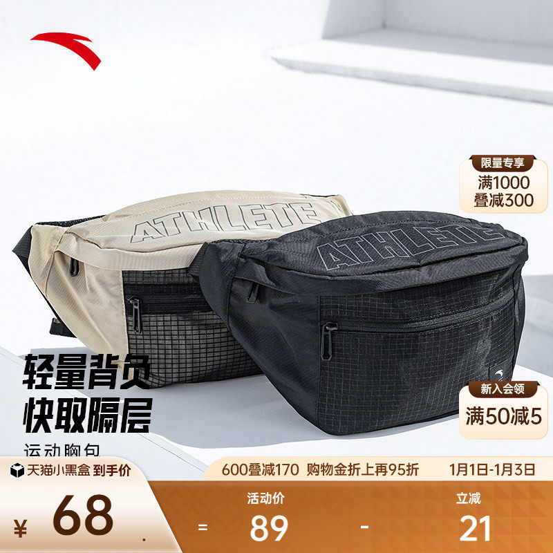 安踏跑步腰包男女单肩通勤休闲黑色斜挎运动包胸包跑步手机包情侣