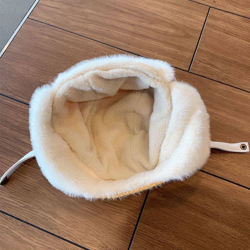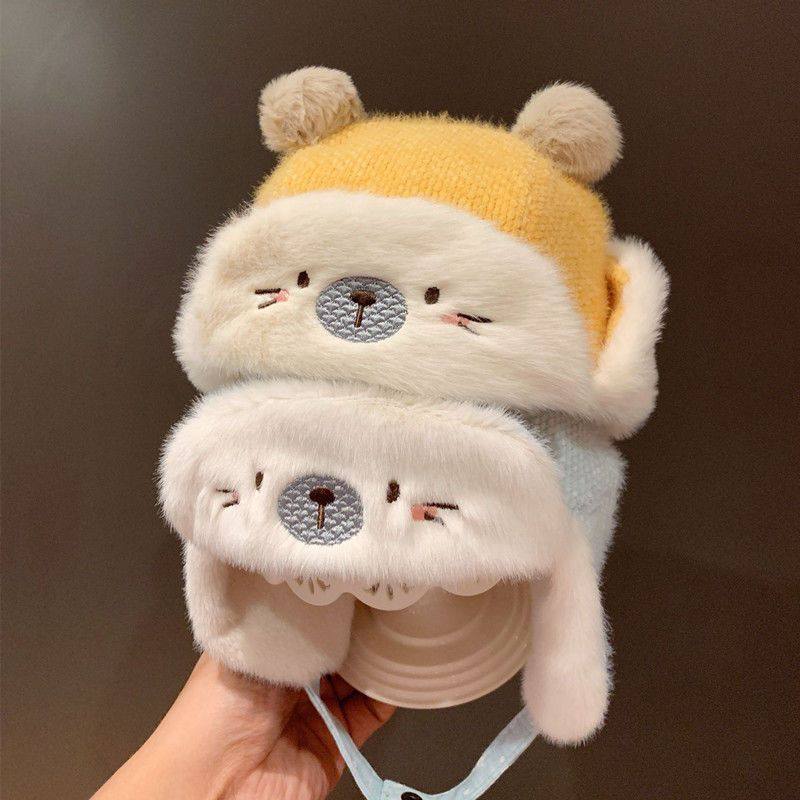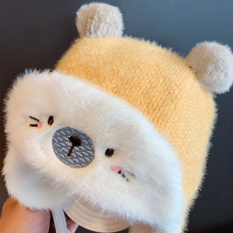 尼多熊婴儿帽子秋围脖一体宝宝毛绒帽防风护耳帽冬季保暖婴幼儿帽