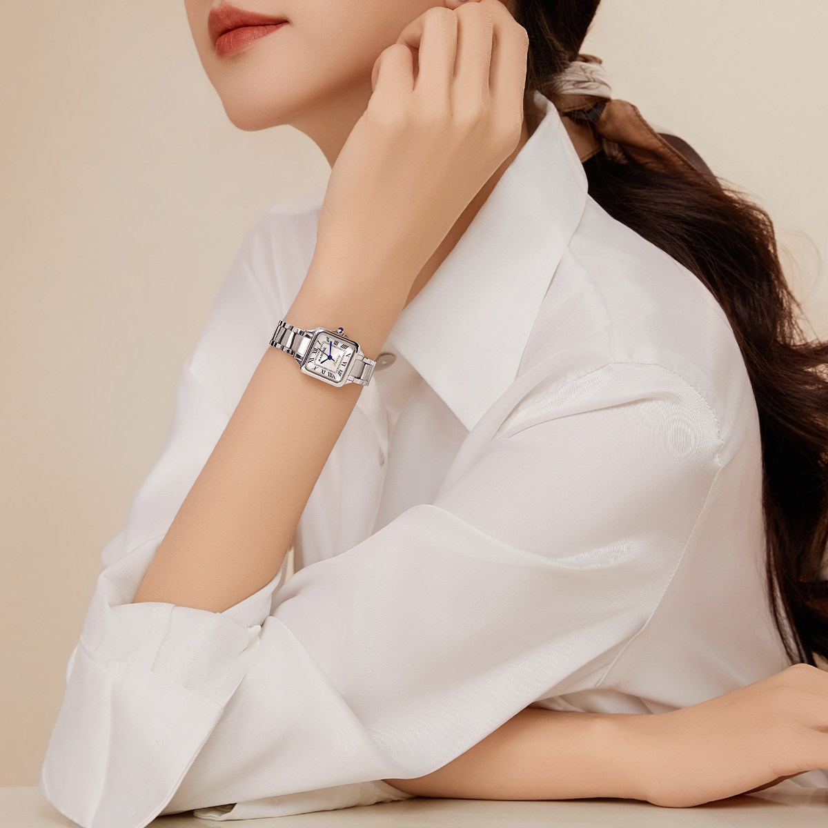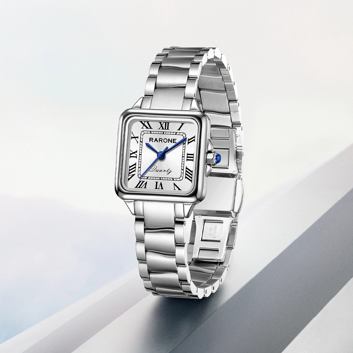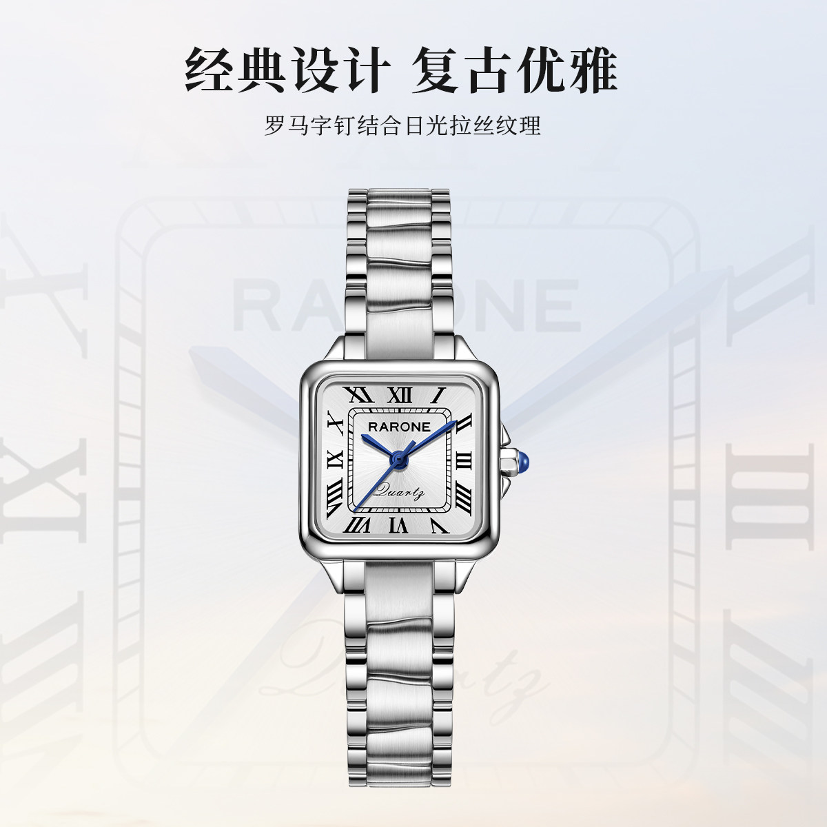 Rarone雷诺手表复古小方表小方糖钢带女款石英腕表