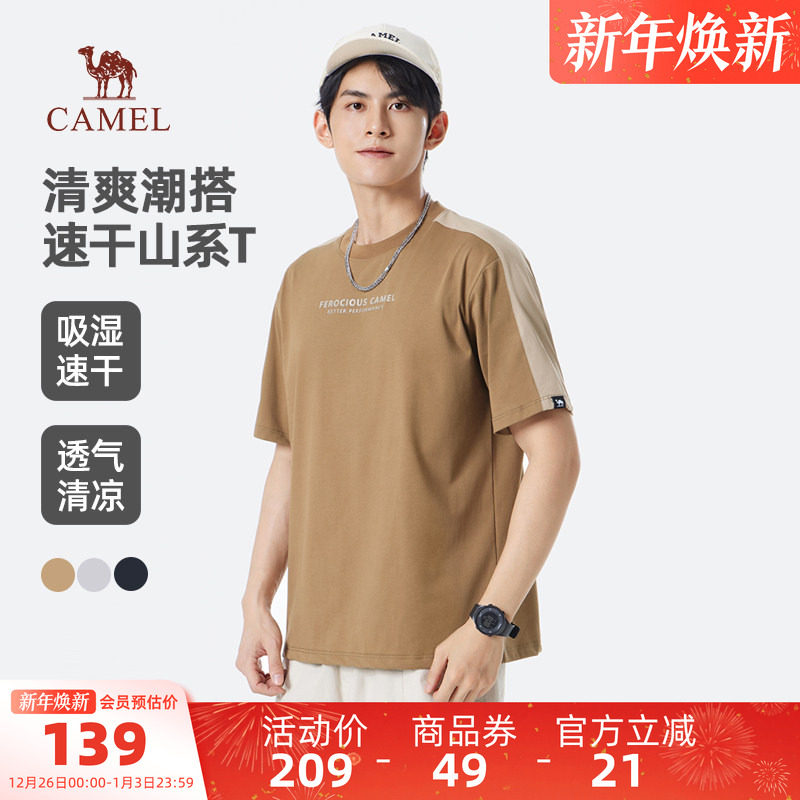 骆驼男装T恤男款运动夏季圆领短袖宽松透气弹力时尚潮流半袖上衣