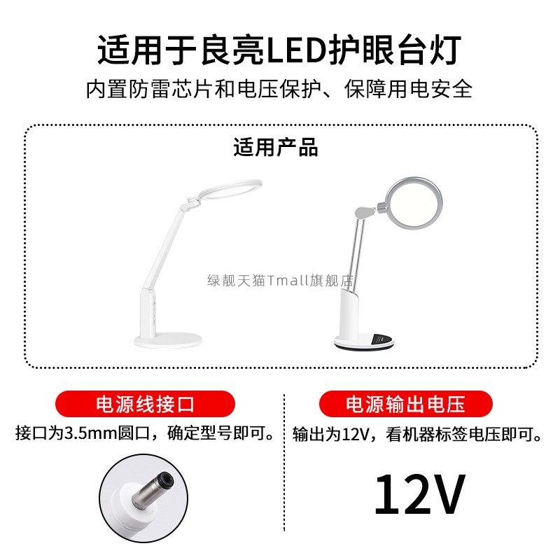 适用于良亮LED护眼台灯控制器KLS-12V0.8A 护眼灯电源适配器线充电器小口