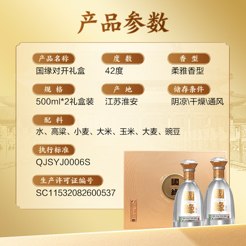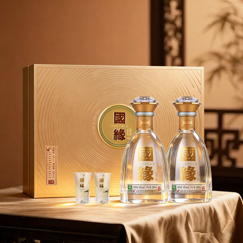 【对开礼盒】国缘对开高档白酒水纯粮食酒礼盒送长辈42度500ml*2