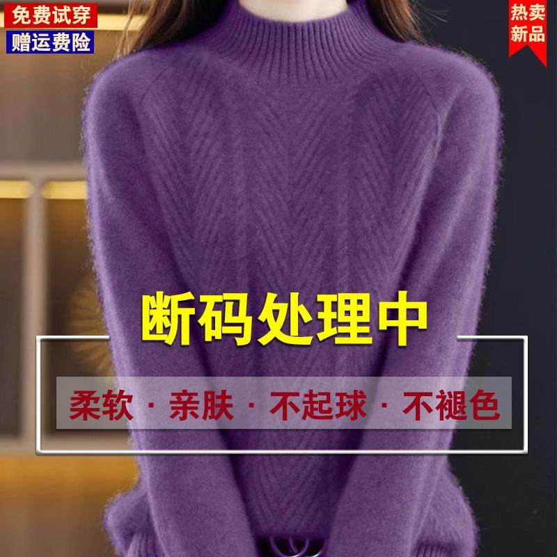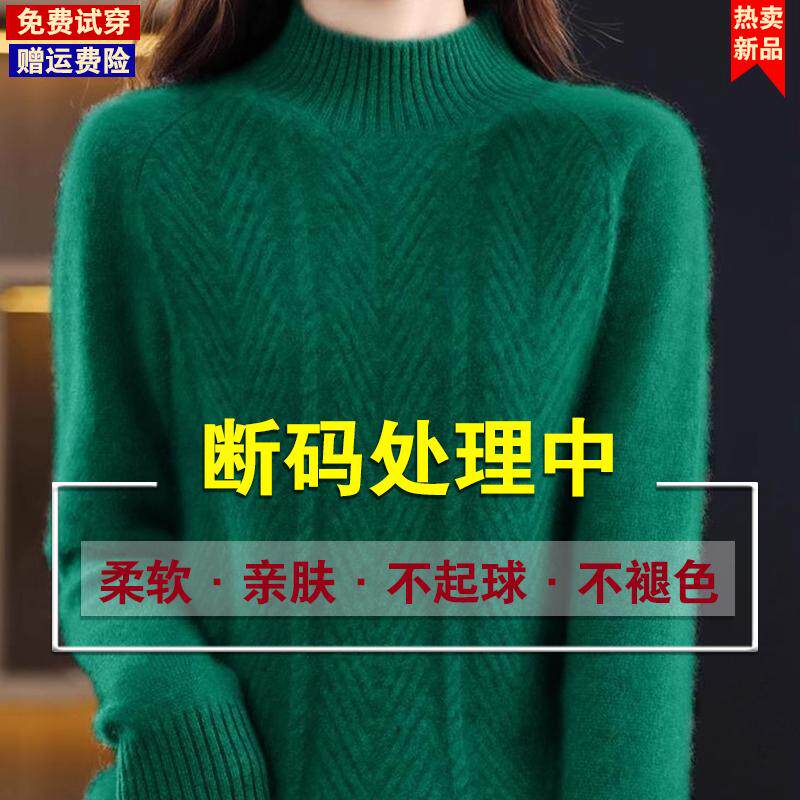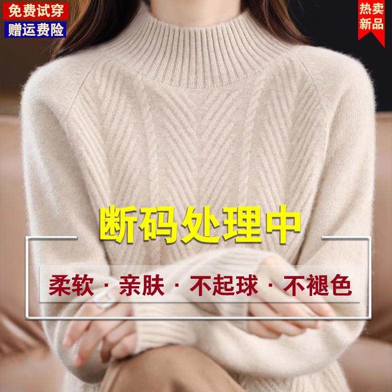 品牌高级感羊毛衫女半高领宽松毛衣秋冬加厚羊绒长袖针织打底衫新
