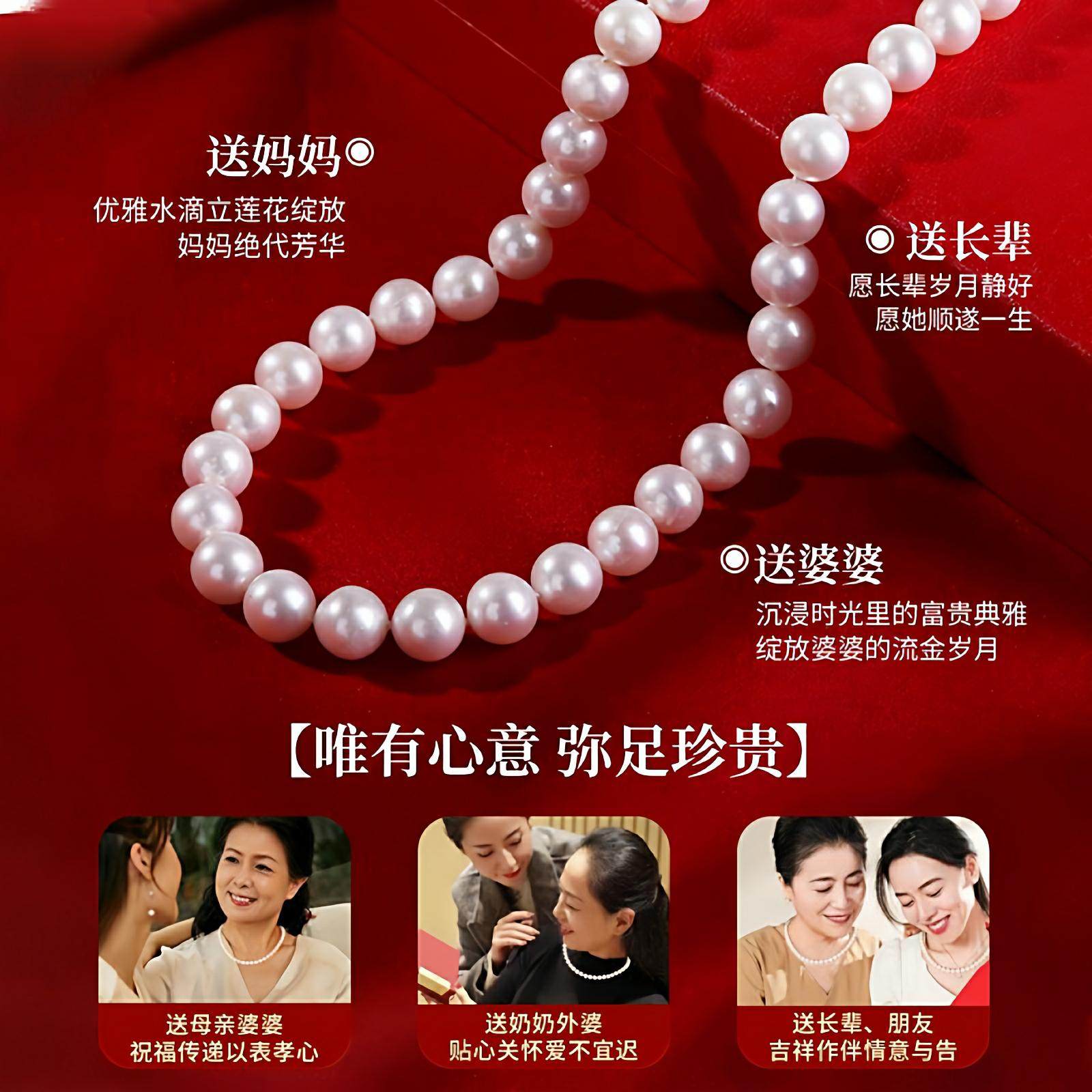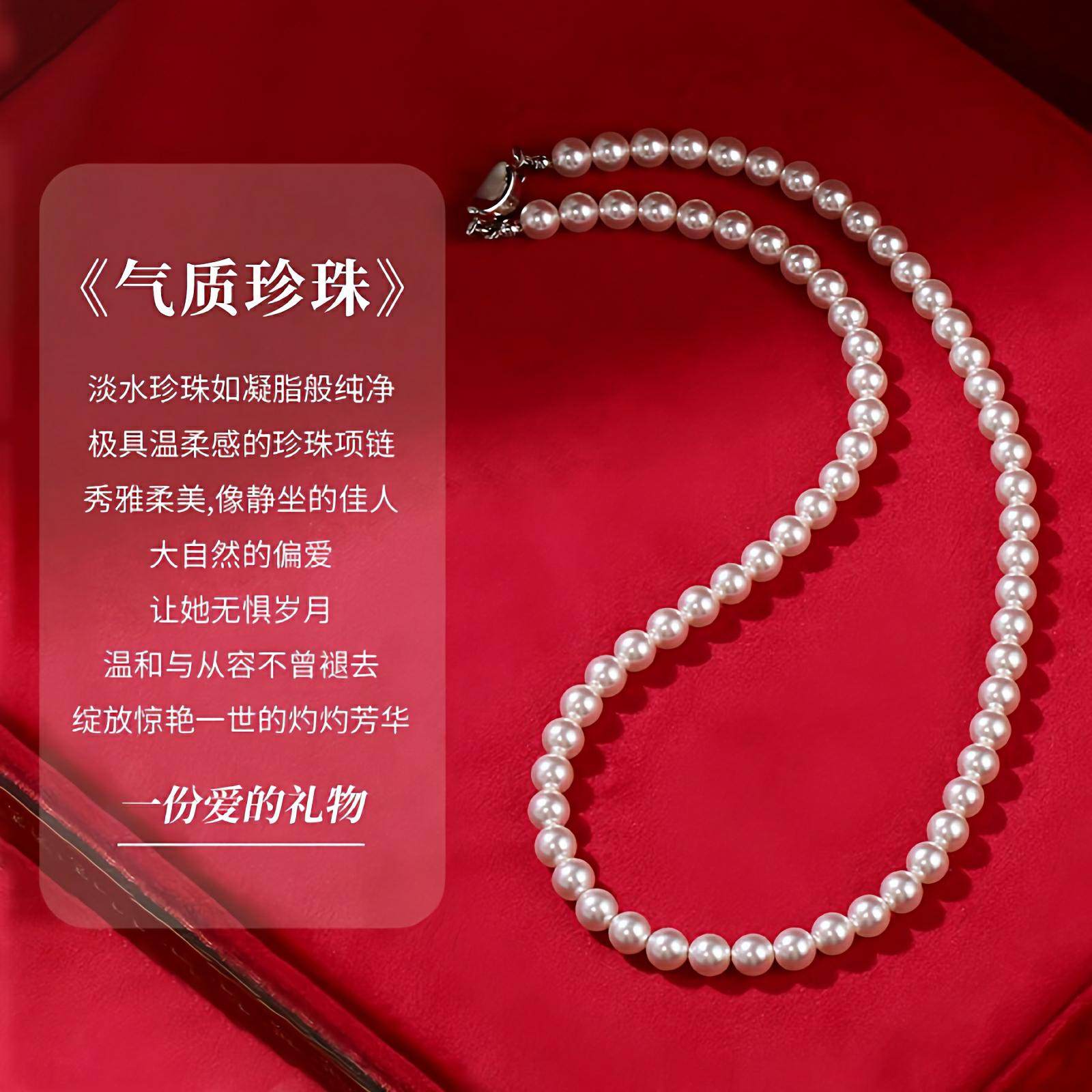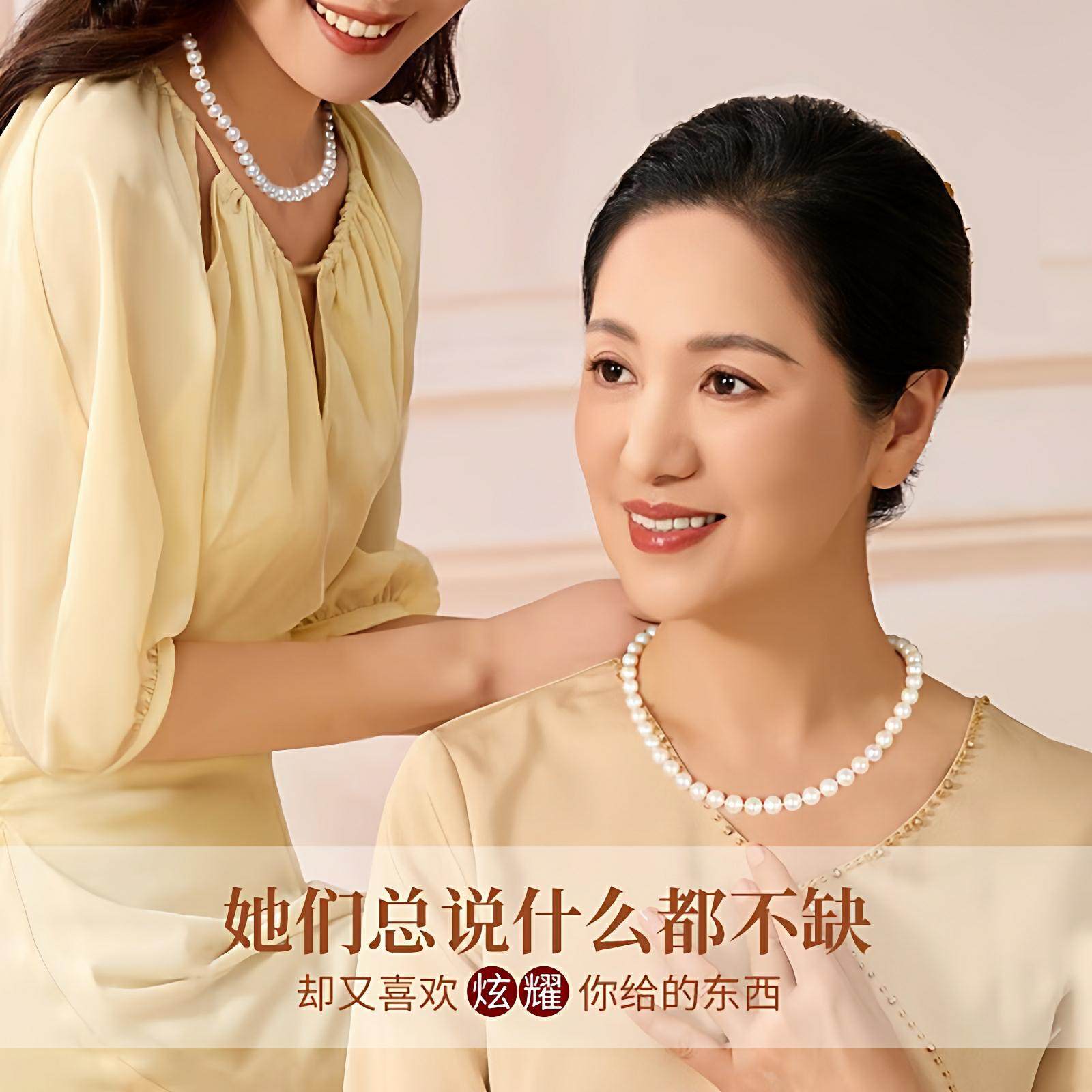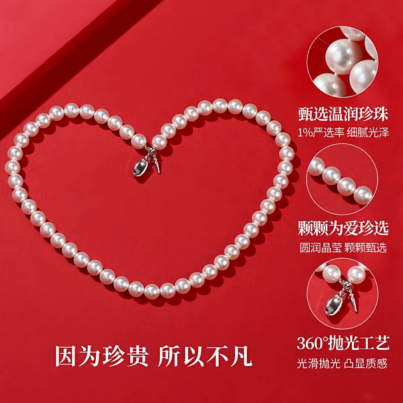 诸暨淡水珍珠项链S925银女士素链近圆强光妈妈链轻奢全珠链送妈妈