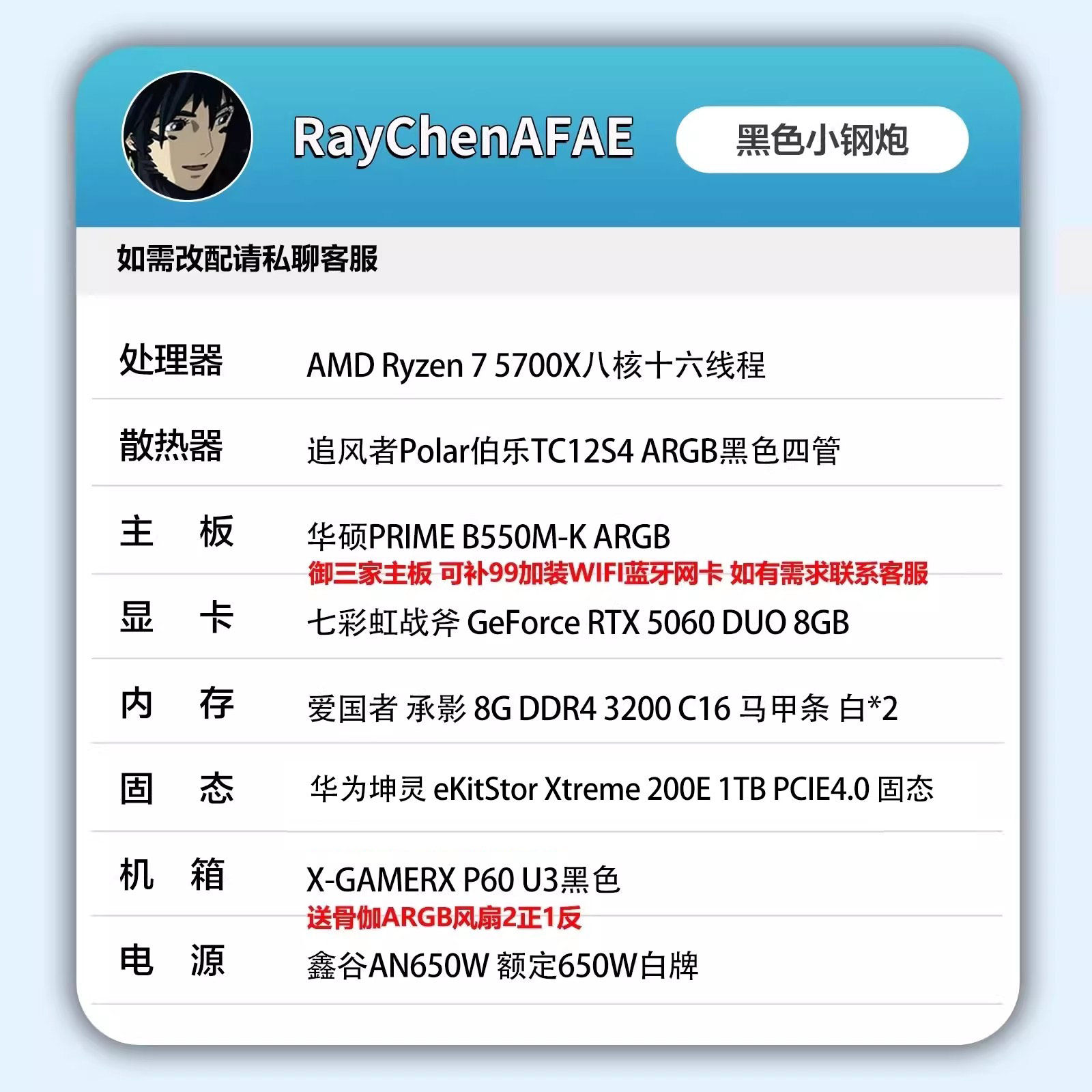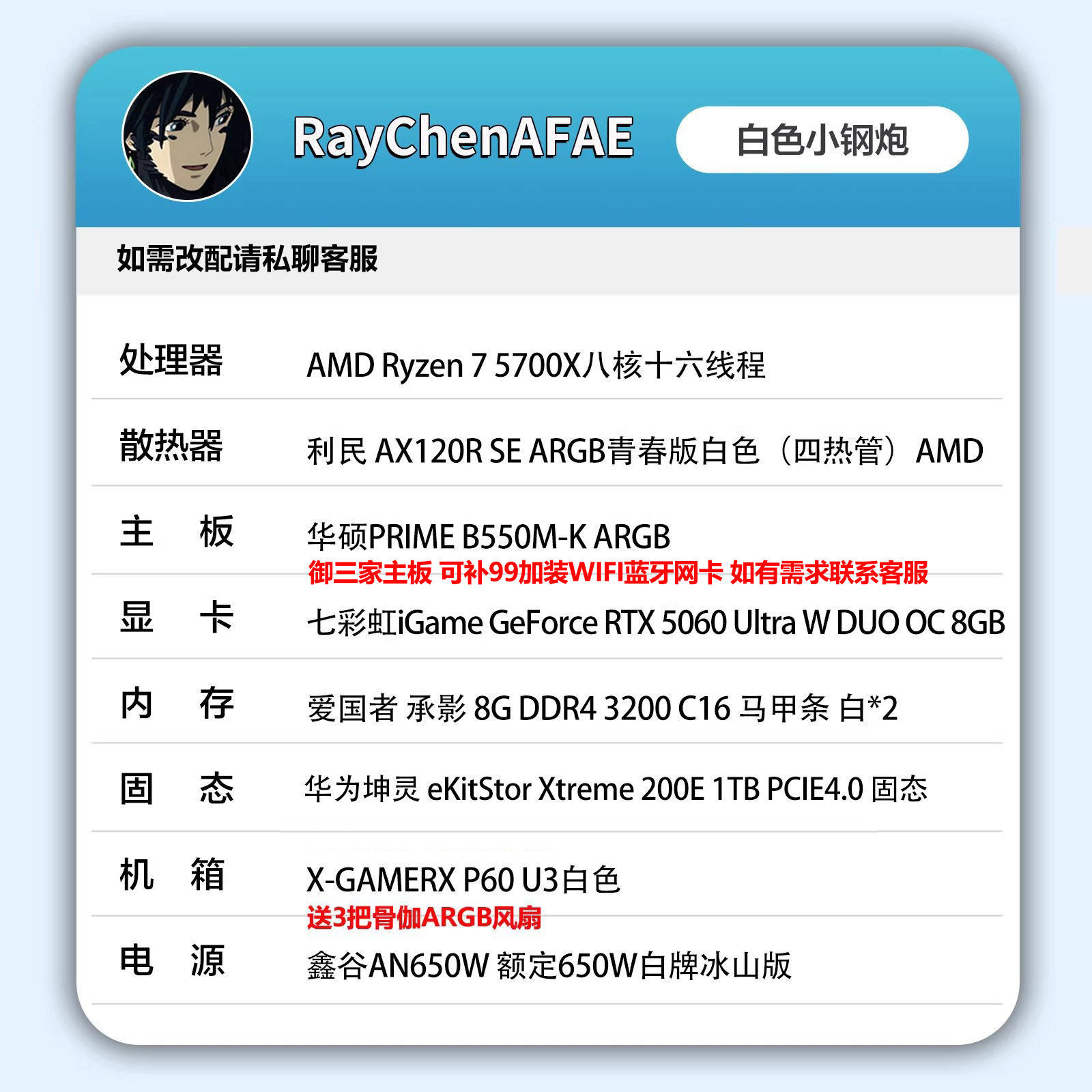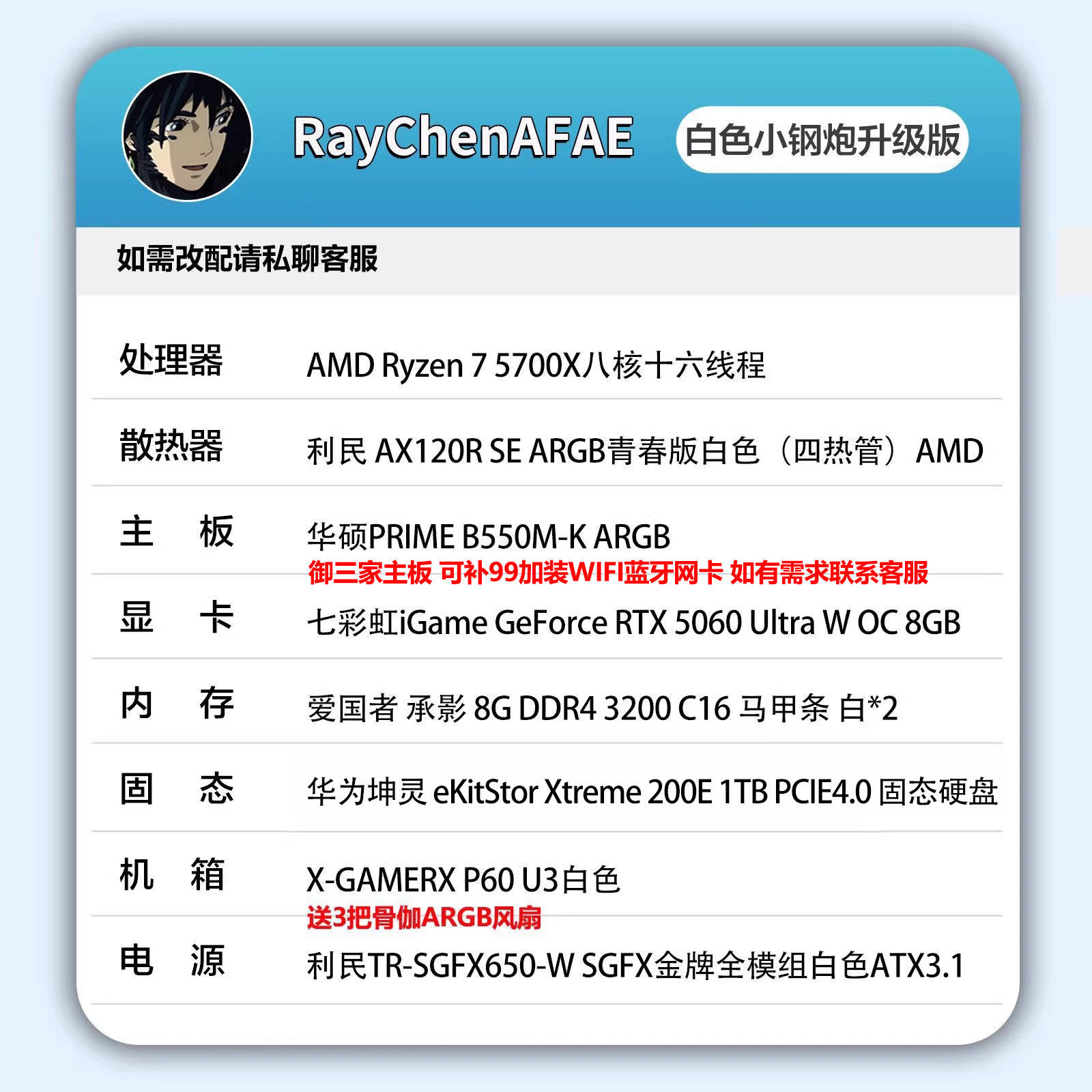 RTX 5060+R7 5700X 纯白RGB小钢炮 高性能DIY游戏生产力电脑主机