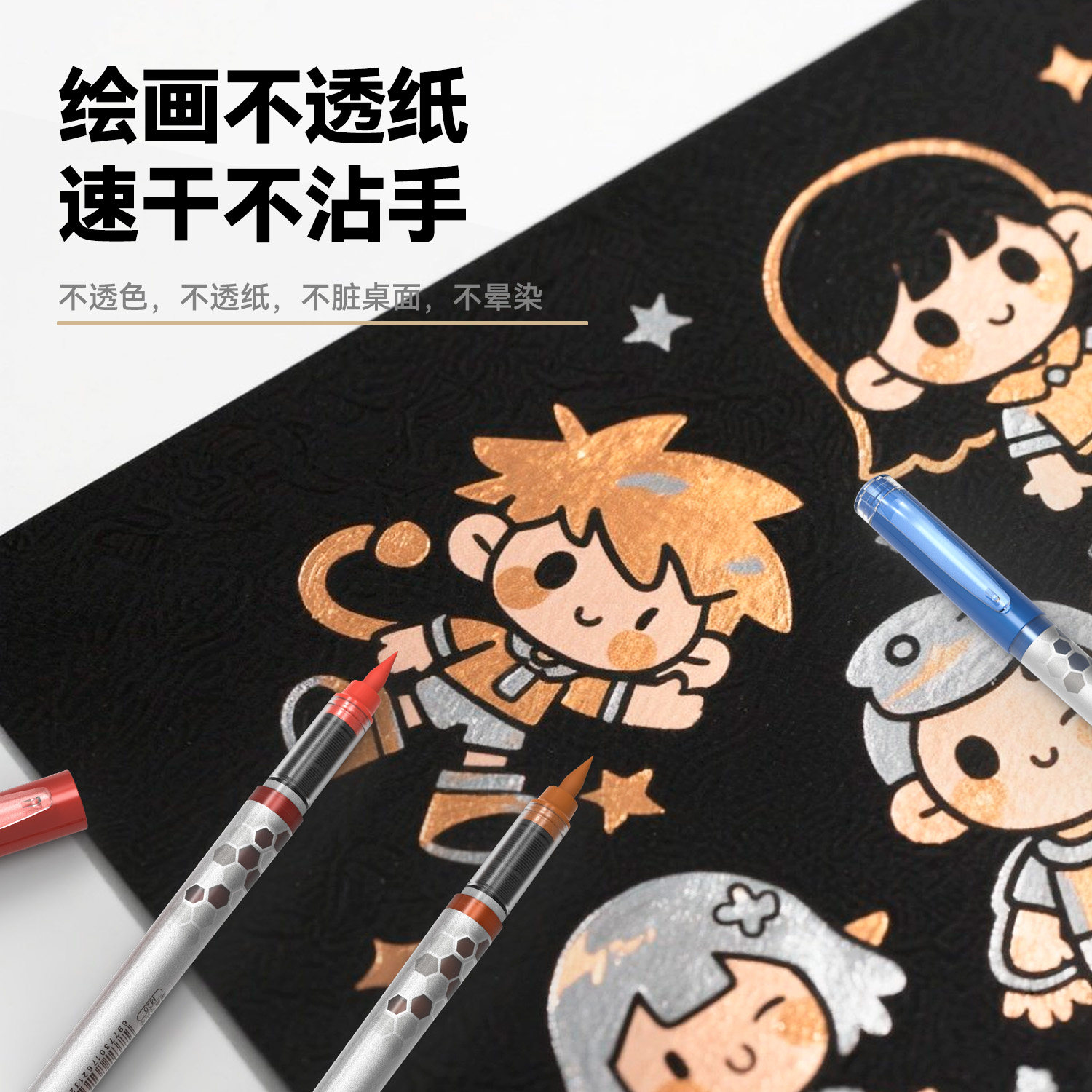 至锦直液式金属丙烯马克笔美术专用水彩笔小学生初中生12色金色银色防水不掉色记号签名金漆笔高达涂色描金笔