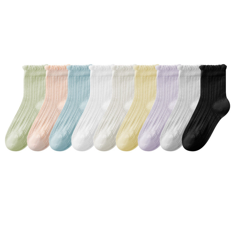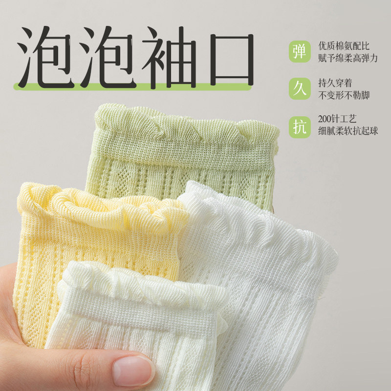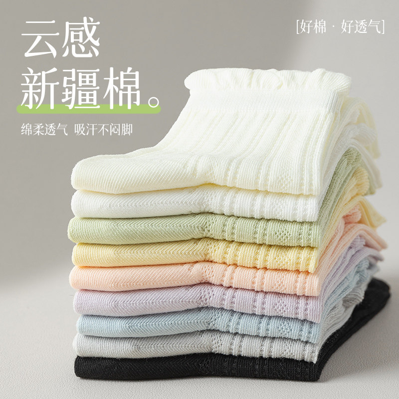 白色袜子女夏季薄款中筒袜纯棉网眼透气花边无骨夏天短筒jk袜吸汗