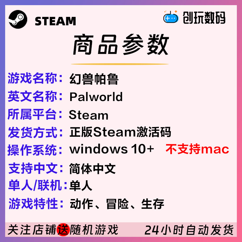 steam中文正版 幻兽帕鲁 Palworld 国区激活码 现货秒发