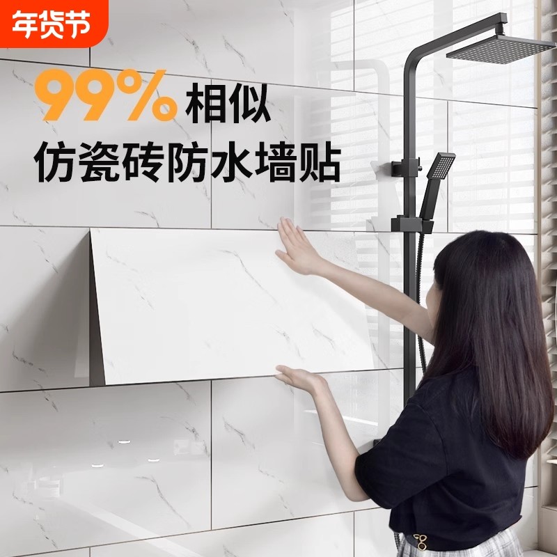 卫生间防水墙贴自粘铝塑板厕所浴室墙面防潮仿瓷砖贴纸厨房卧室