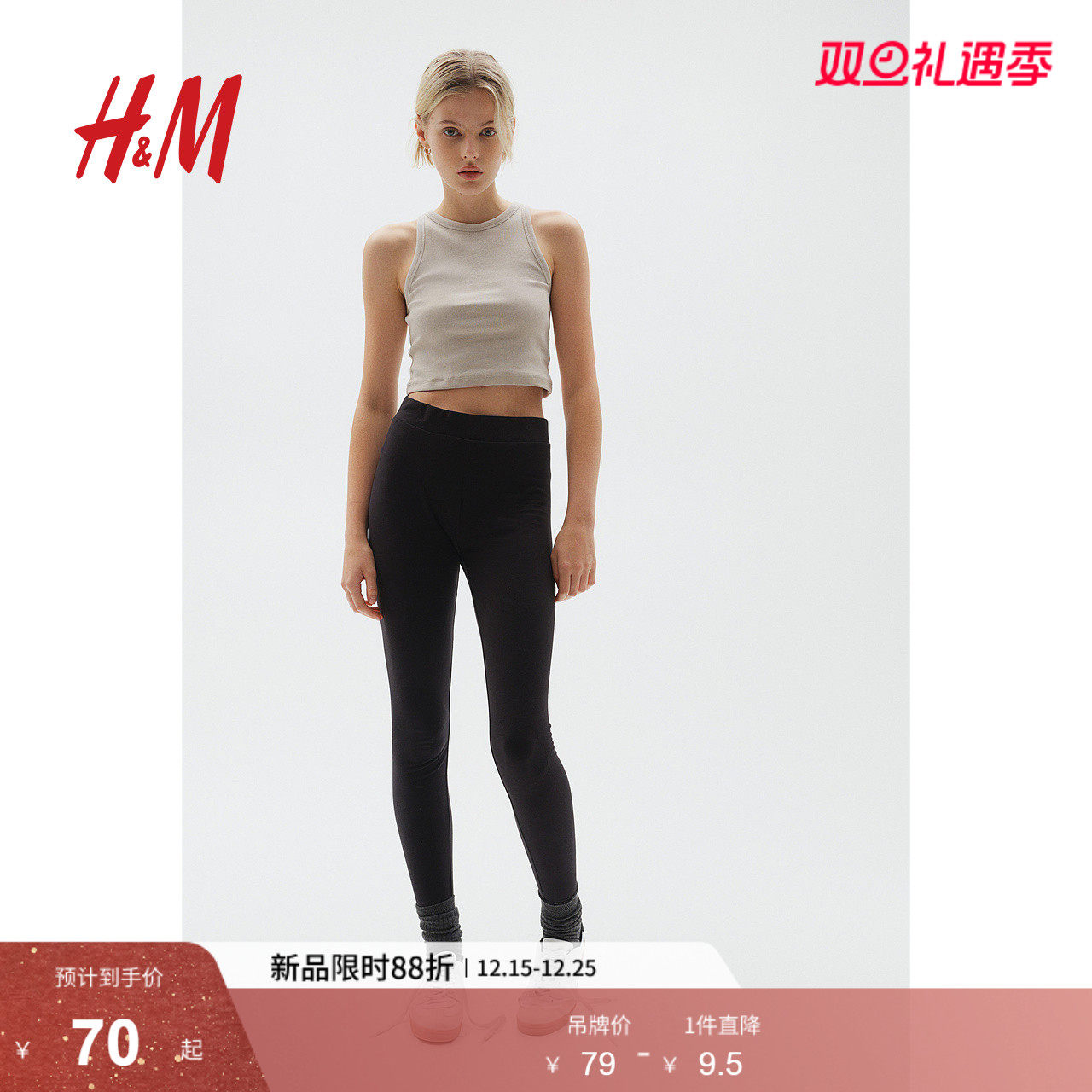 HM女装打底裤冬季舒适柔软休闲时尚简约高腰长裤1234748