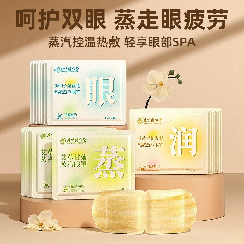 北京同仁堂叶黄素蒸汽眼罩热敷学生熬夜缓解眼疲劳艾草自发热眼贴