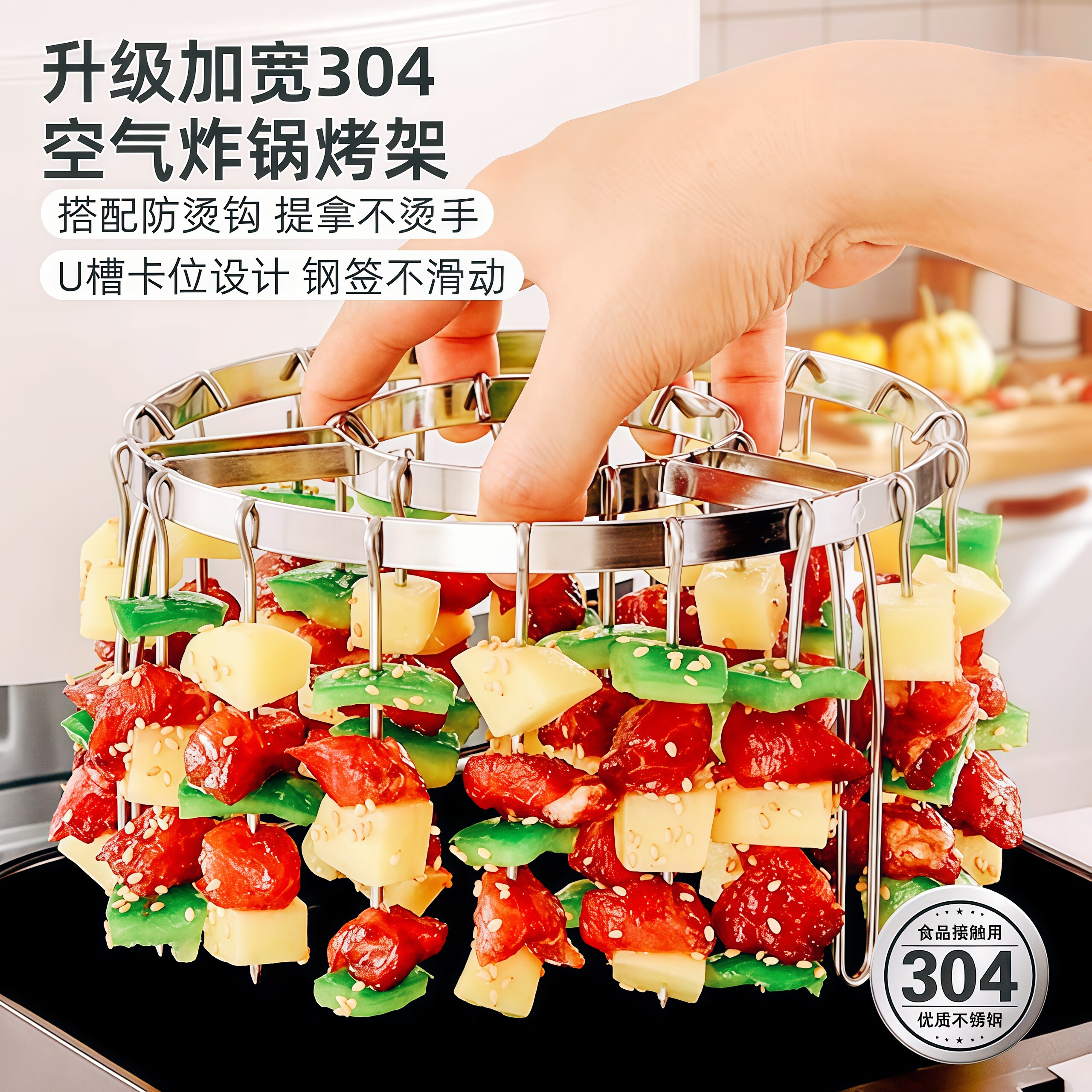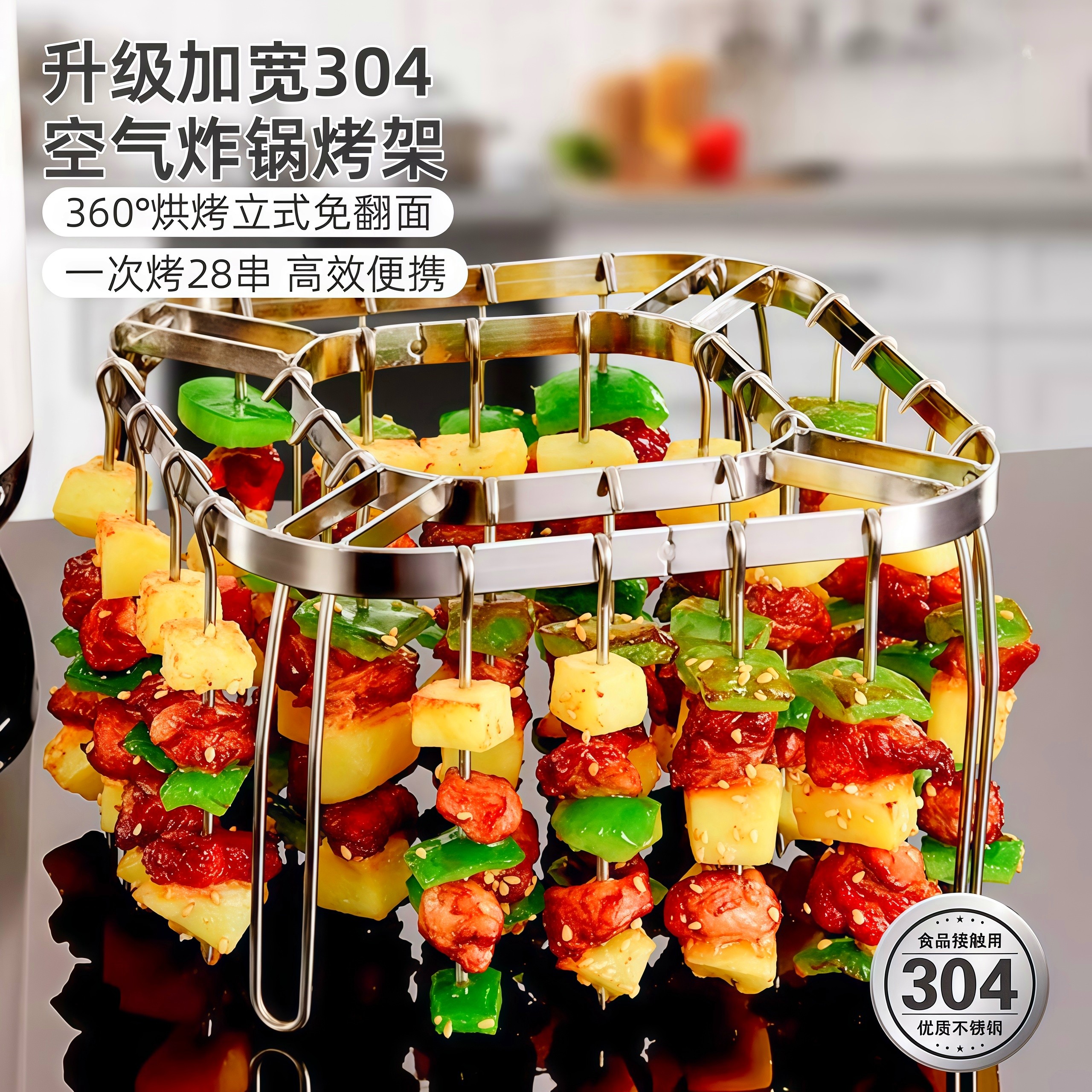 空气炸锅烧烤架家用厨房烤箱吊炉架304不锈钢免翻面立式肉串签子