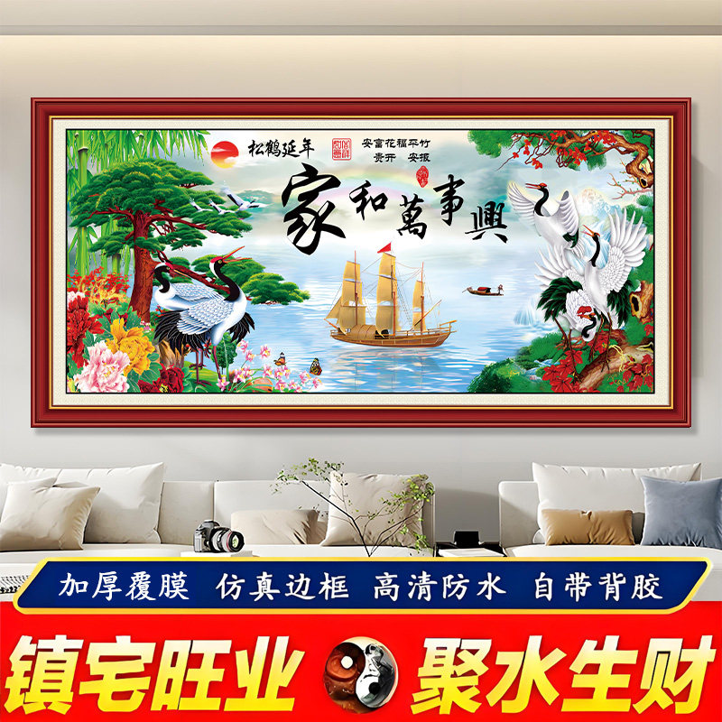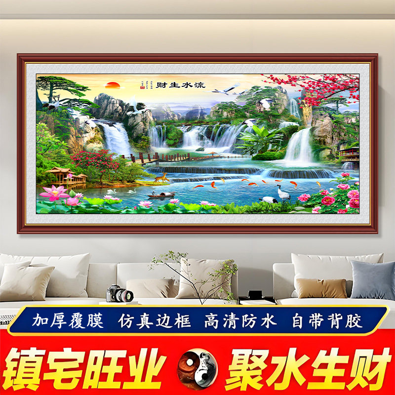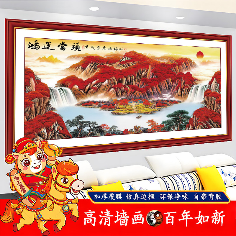 客厅沙发背景墙装饰画高档大气山水风景画3D立体墙贴画自粘壁纸画