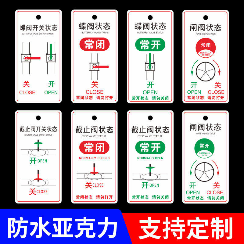 阀开关常开常闭标识球阀状态闸消防喷淋管道阀门开关状态标识牌标志牌蝶阀截止阀开启关闭吊牌亚克力双面挂牌