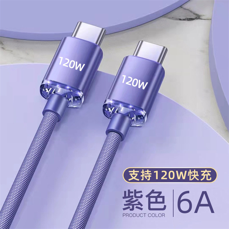 艾胜者 双头Typec数据线120W快充6A闪充适用华为荣耀oppo小米vivo真我iQOO魅族tpyec平板iPad手机闪充电线器