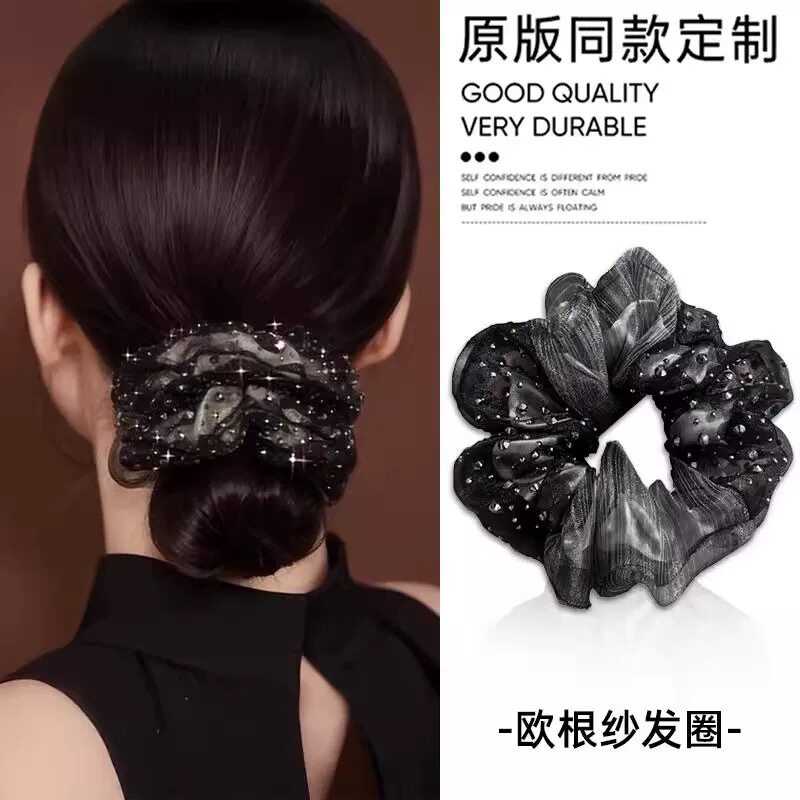 欧根纱满天星大肠发圈优雅高级发绳头绳盘发丸子头花发饰黑色量多