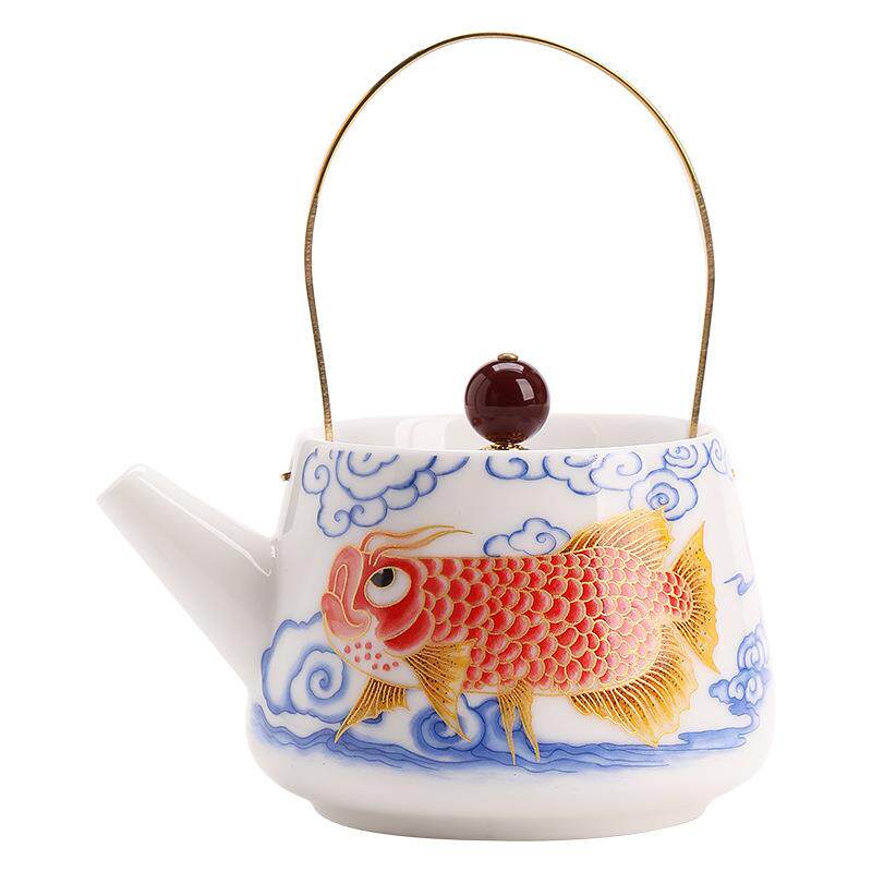 羊脂玉龙鱼提梁壶家用茶壶泡茶喝茶陶瓷茶水壶单壶泡茶器福满茶杯