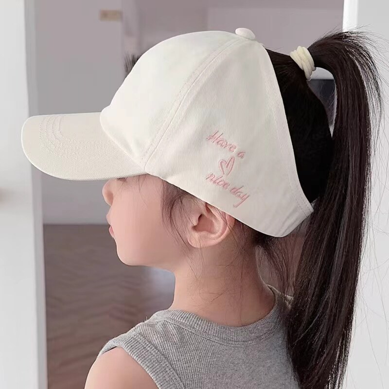 儿童帽子棒球女童可扎高马尾遮阳帽夏季防晒空顶鸭舌帽女宝太阳帽