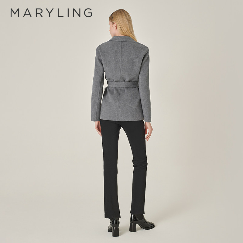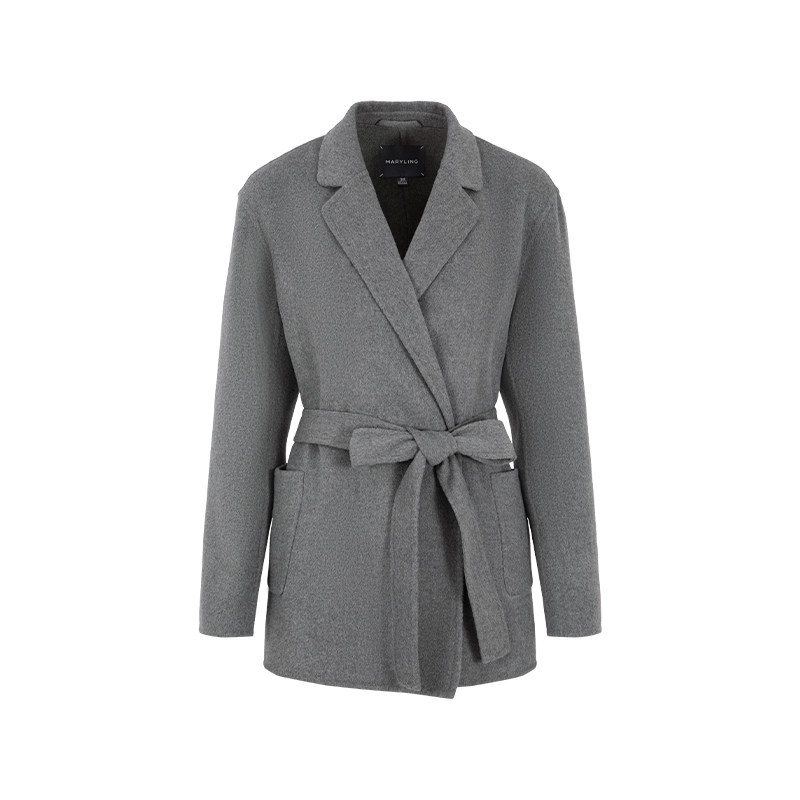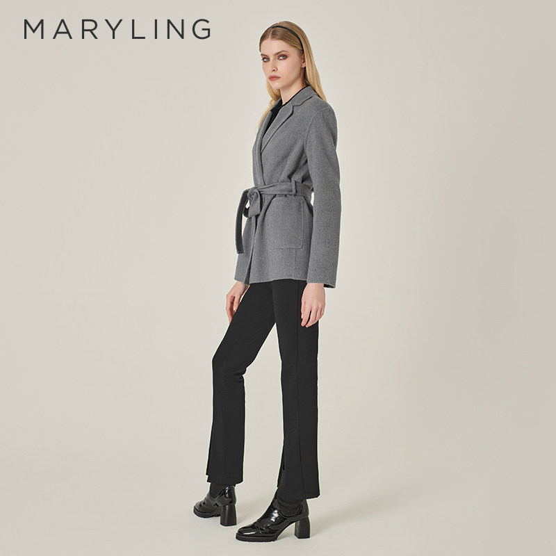 MARYLING玛俪琳冬季新品灰色披挂式双面呢丝毛外套A1EHW90130