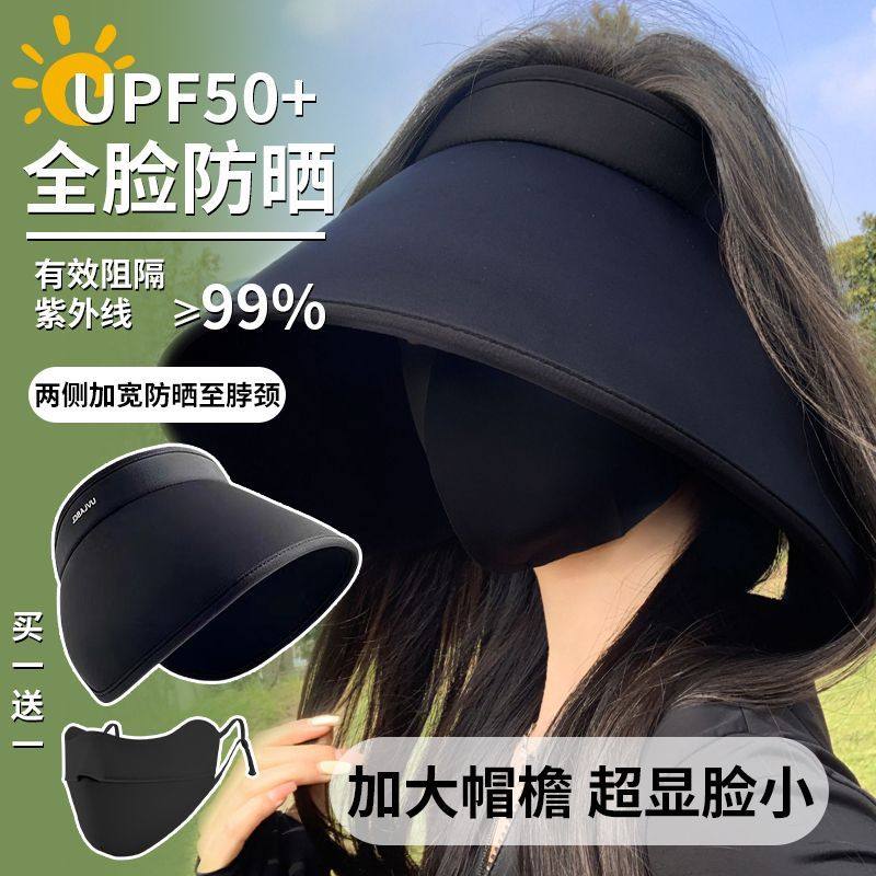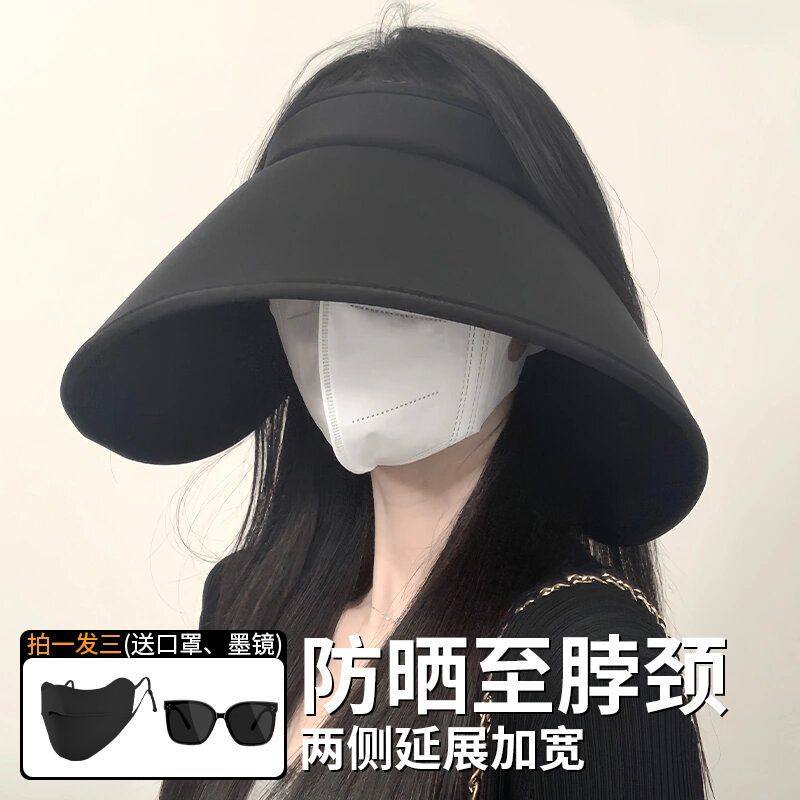 环绕式全脸防晒帽女夏季大帽檐空顶遮阳帽骑车防紫外线冰丝太阳帽