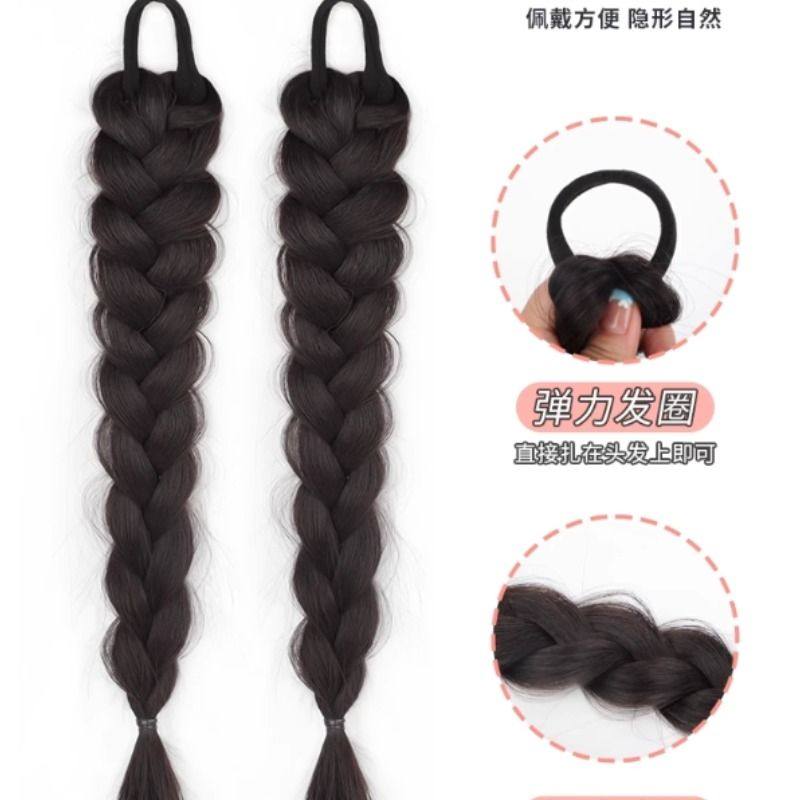 时尚旅拍假发马尾麻花辫子女藏族女孩中长拳击辫小辫子黑色仿真发