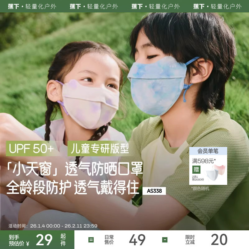 蕉下儿童凉感防晒口罩AS3382户外夏季宝宝薄款遮阳亲肤护眼角面罩