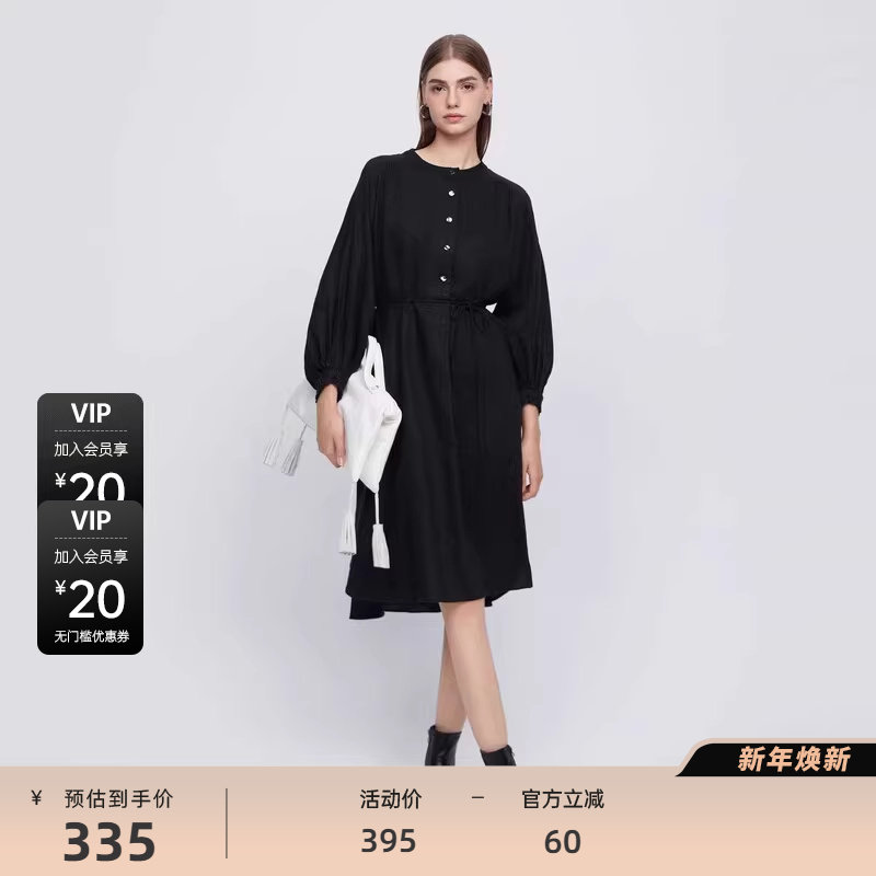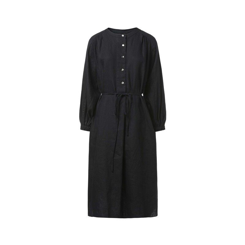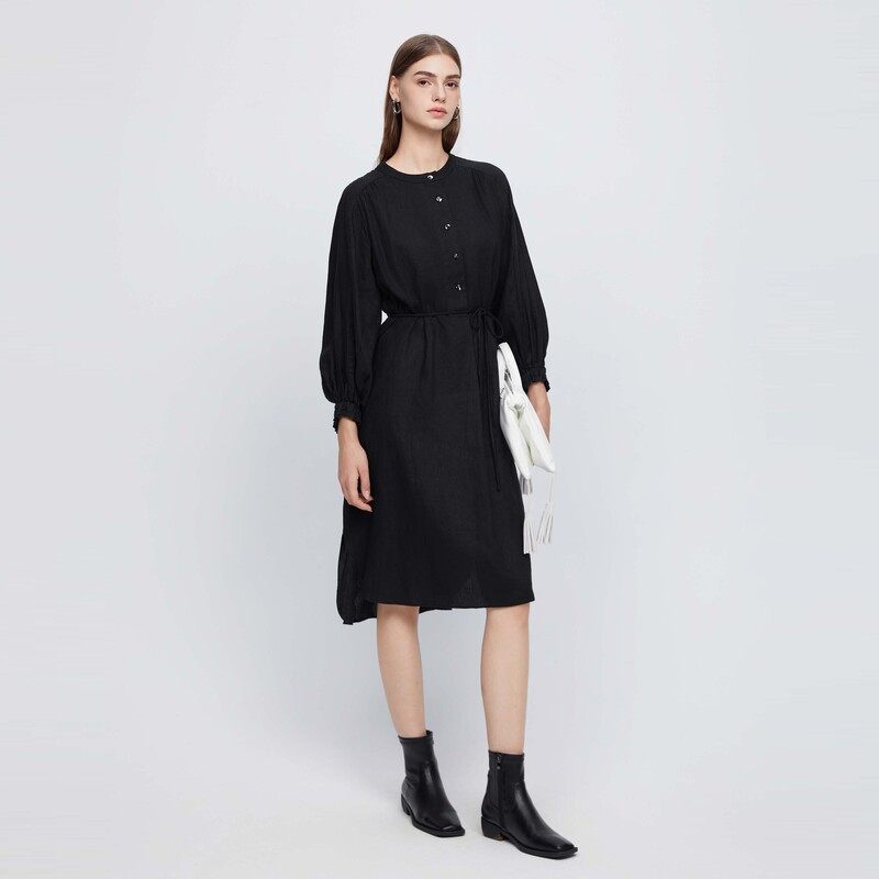 衬衫连衣裙 碎褶收腰 亚麻质地