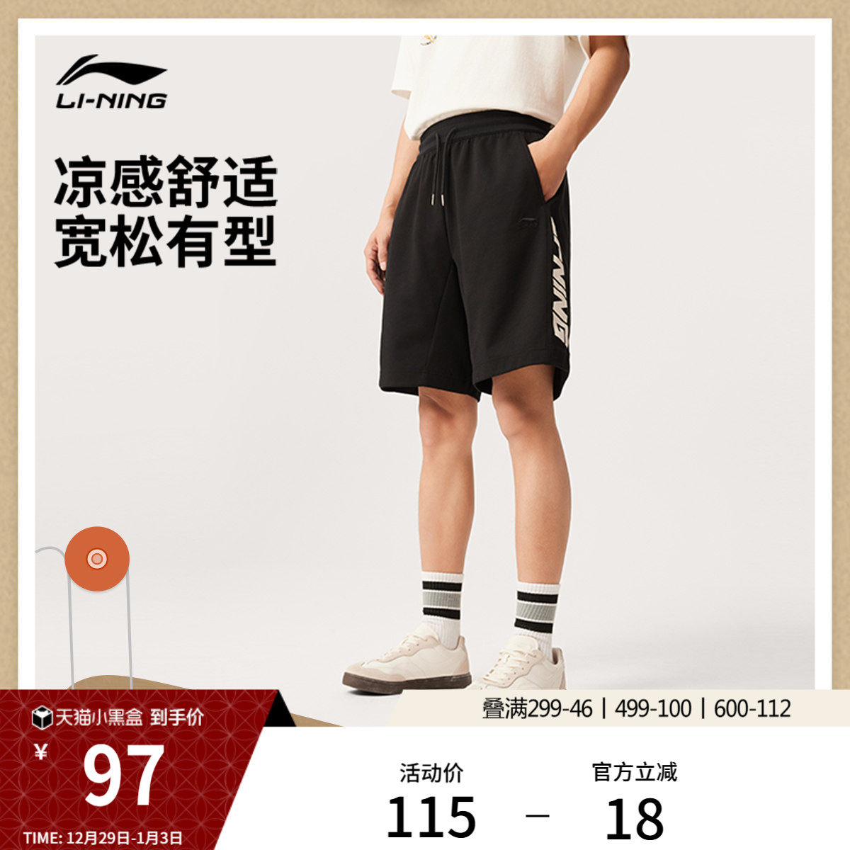 李宁短裤男士夏季新款潮流运动短裤透气宽松裤子针织印花运动裤男
