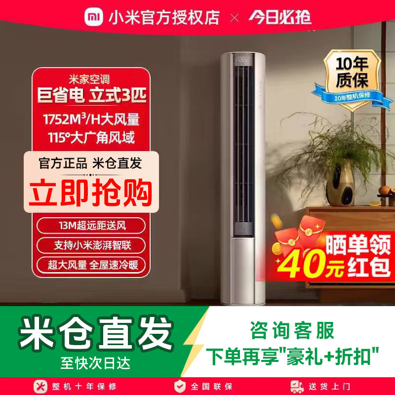 小米米家巨省电空调3匹一级能效大风口柜机变频家用客厅冷暖官方