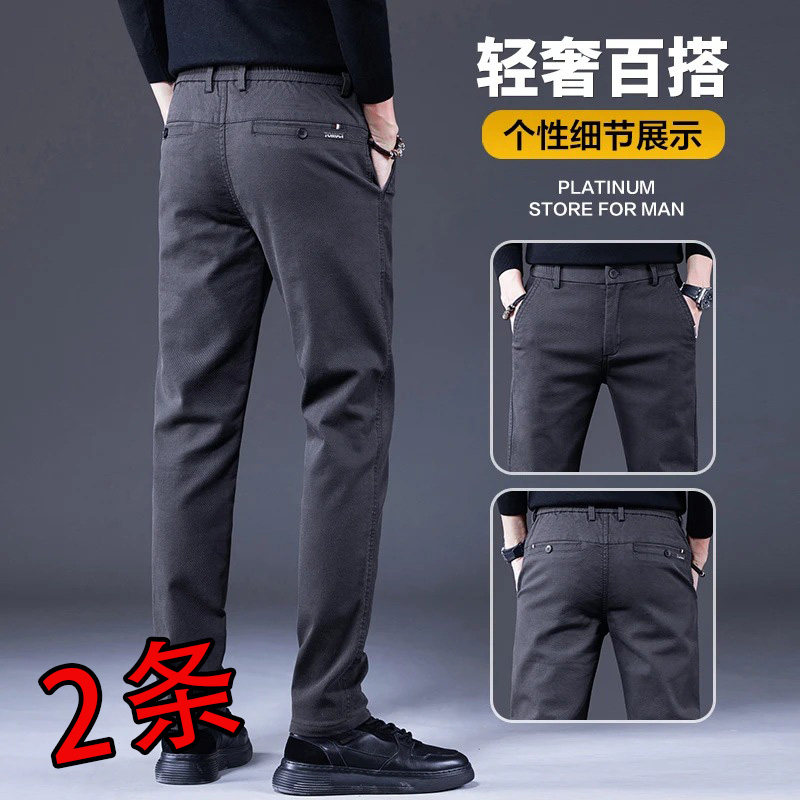 罗蒙加绒加厚男士休闲裤商务休闲秋冬季新款弹力直筒西裤秋冬款
