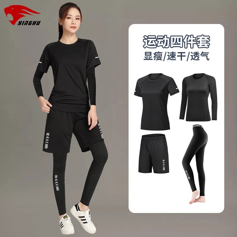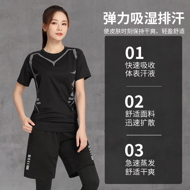健身衣女速干跑步套装大码骑行衣服晨跑运动服夏季上衣瑜伽裤训练