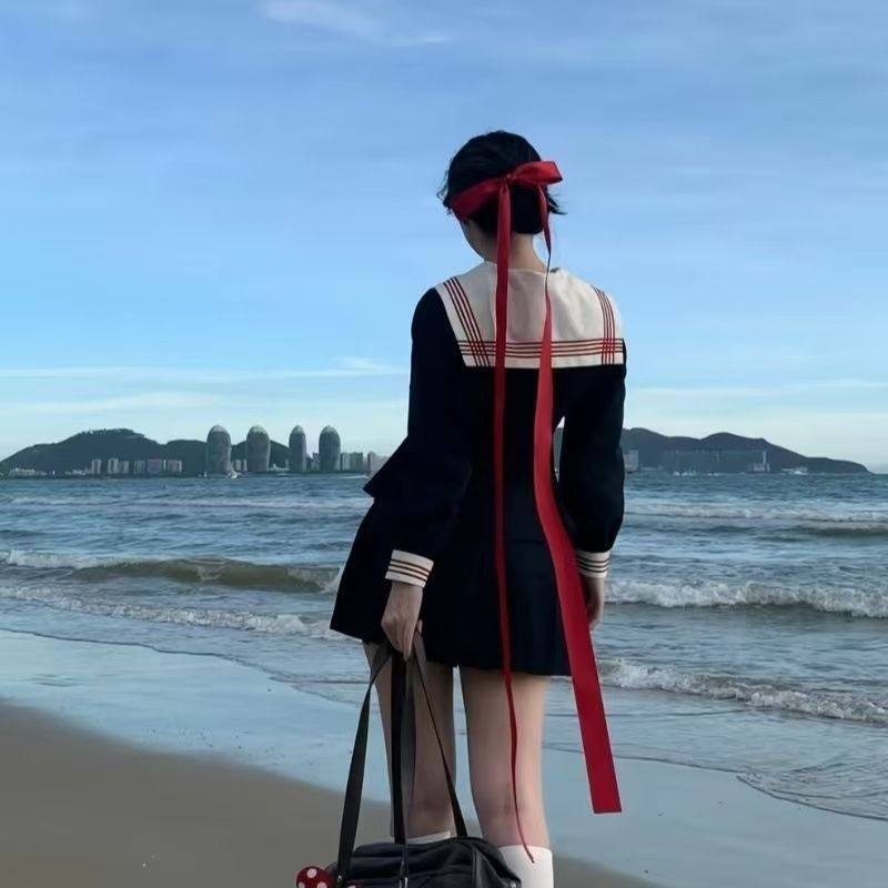 jk制服发夹红色超长飘带蝴蝶结发饰垂耳兔甜美法式芭蕾风顶夹头饰