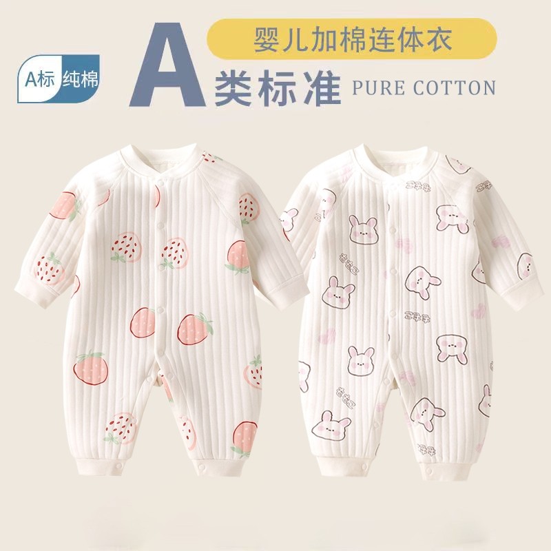 婧麒新生儿婴儿衣服秋冬夹棉满月纯棉初生宝宝秋装连体衣a类爬服