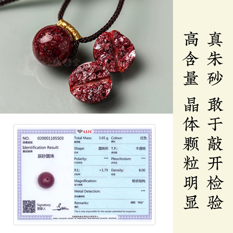 大善堂朱砂官方旗舰店原石本命年晶体吊坠男女项链挂件饰品锁骨链