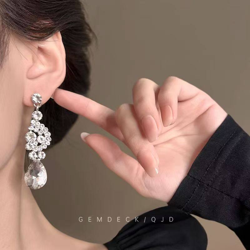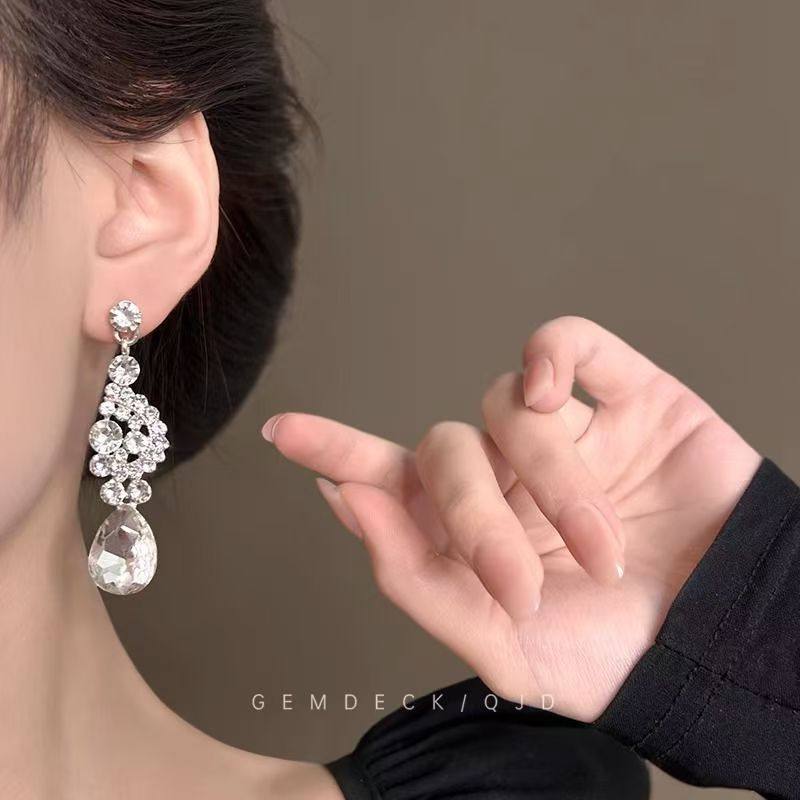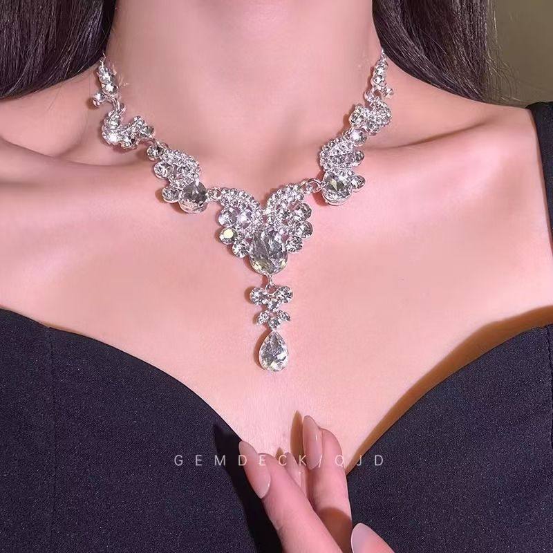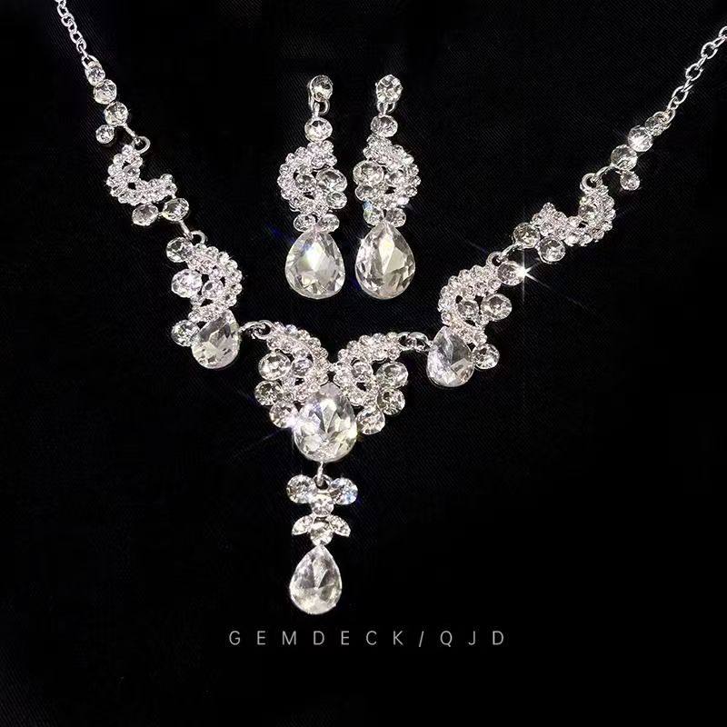 轻奢超闪水滴耳环项链套装女复宫廷风锁骨链高级感舞会礼服配饰