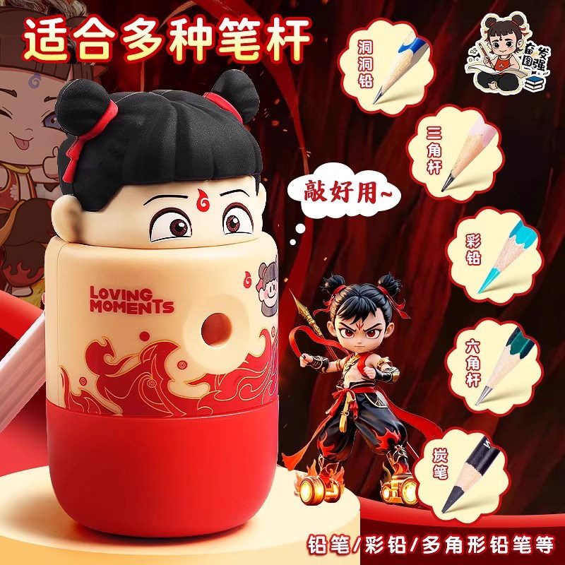 哪吒3D立体削笔器敖丙创意卡通手摇自动进铅削笔机小学生专用高颜值ins转笔刀铅笔刀儿童用多功能美术刨笔机