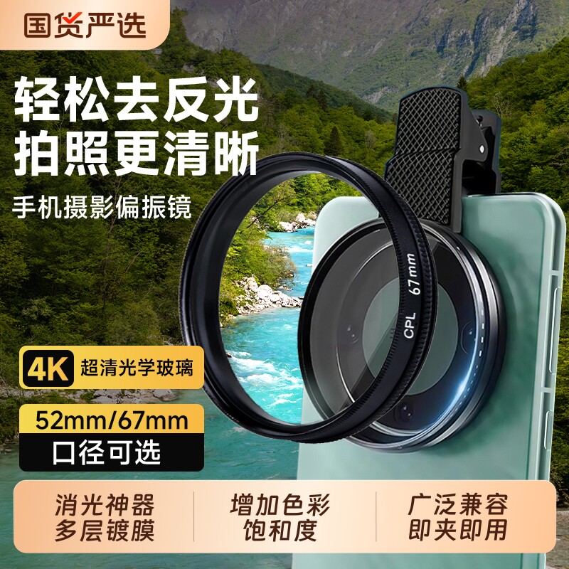 手机专用偏振镜头2025新款高清镀膜偏光过滤水面反光滤镜外接后摄影消除适用苹果安卓拍照神器