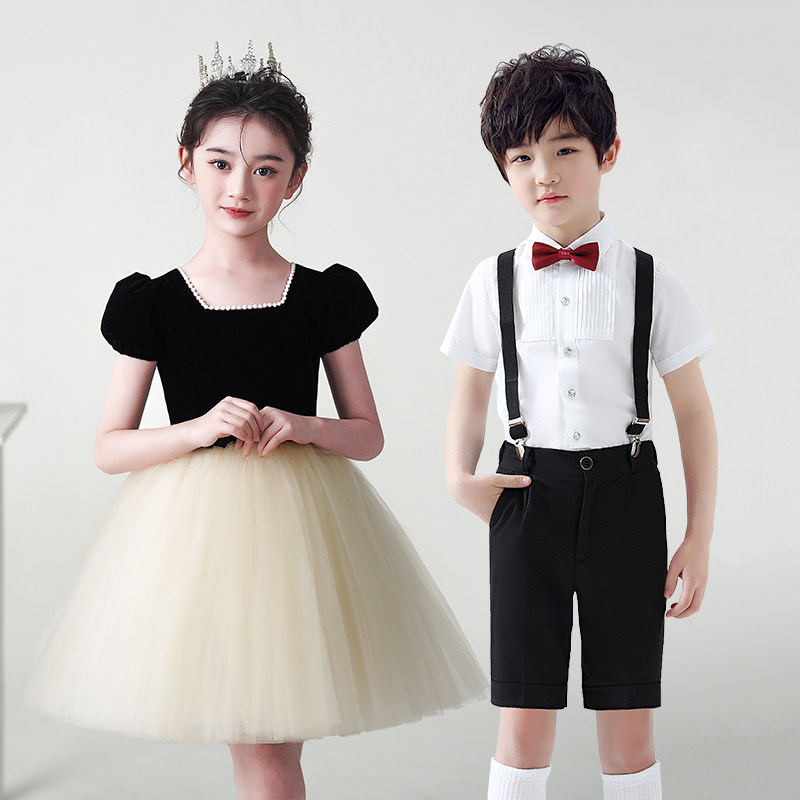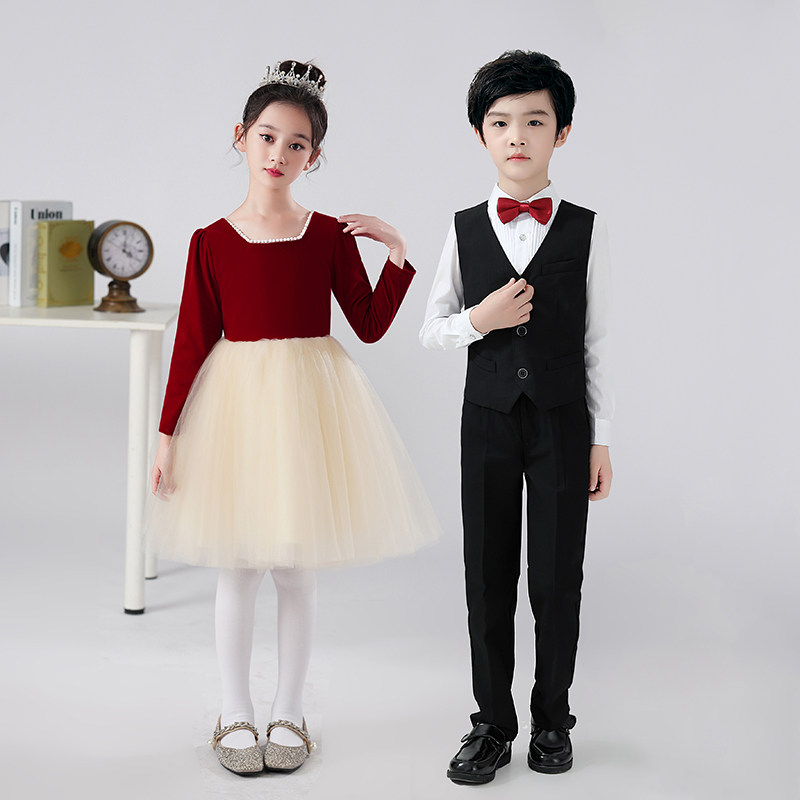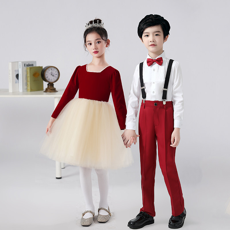 元旦儿童演出服女童舞蹈裙小学生合唱男童背带裤朗诵表演服装冬季
