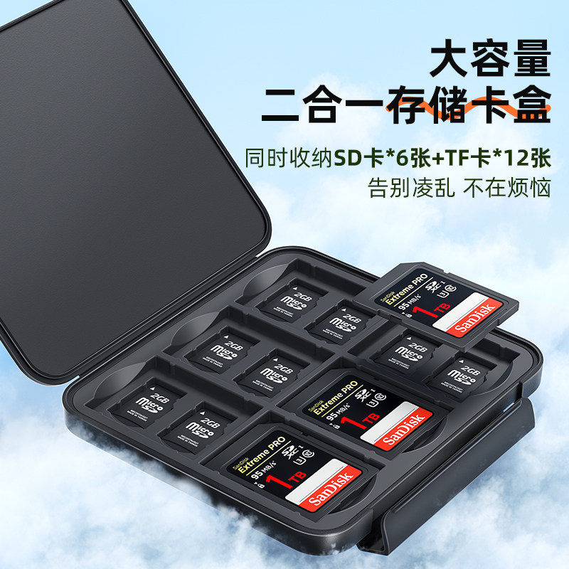 绿巨能内存sd卡收纳盒储存卡包TF/XQD/CF卡套存储卡记忆卡大容量保护盒防潮防尘相机配件闪存卡便携防摔硬壳