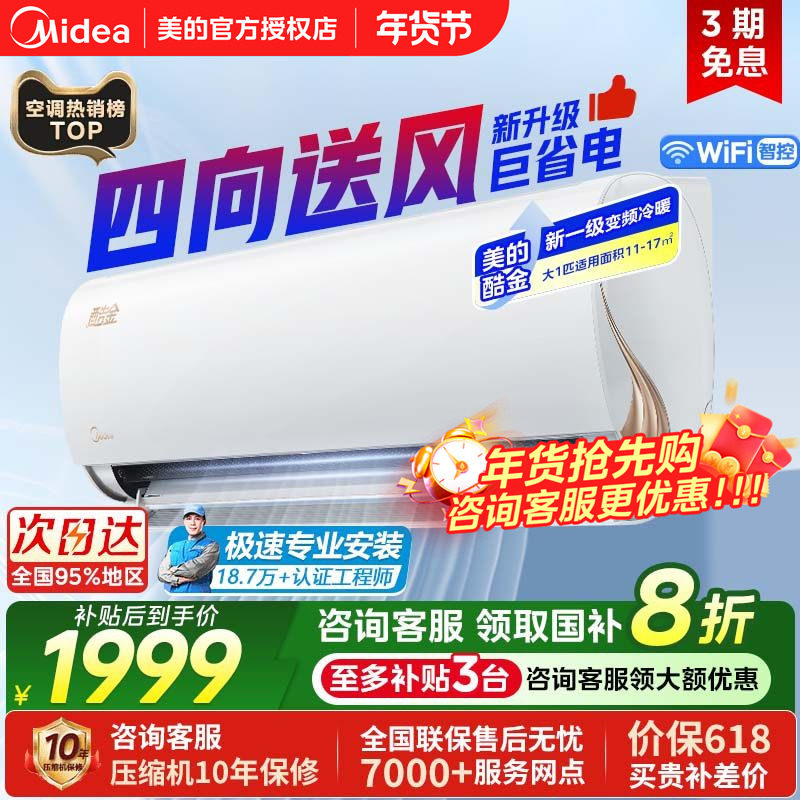 美的酷金2代空调大1匹一级变频冷暖家用节能省电挂机官方正品ZHA